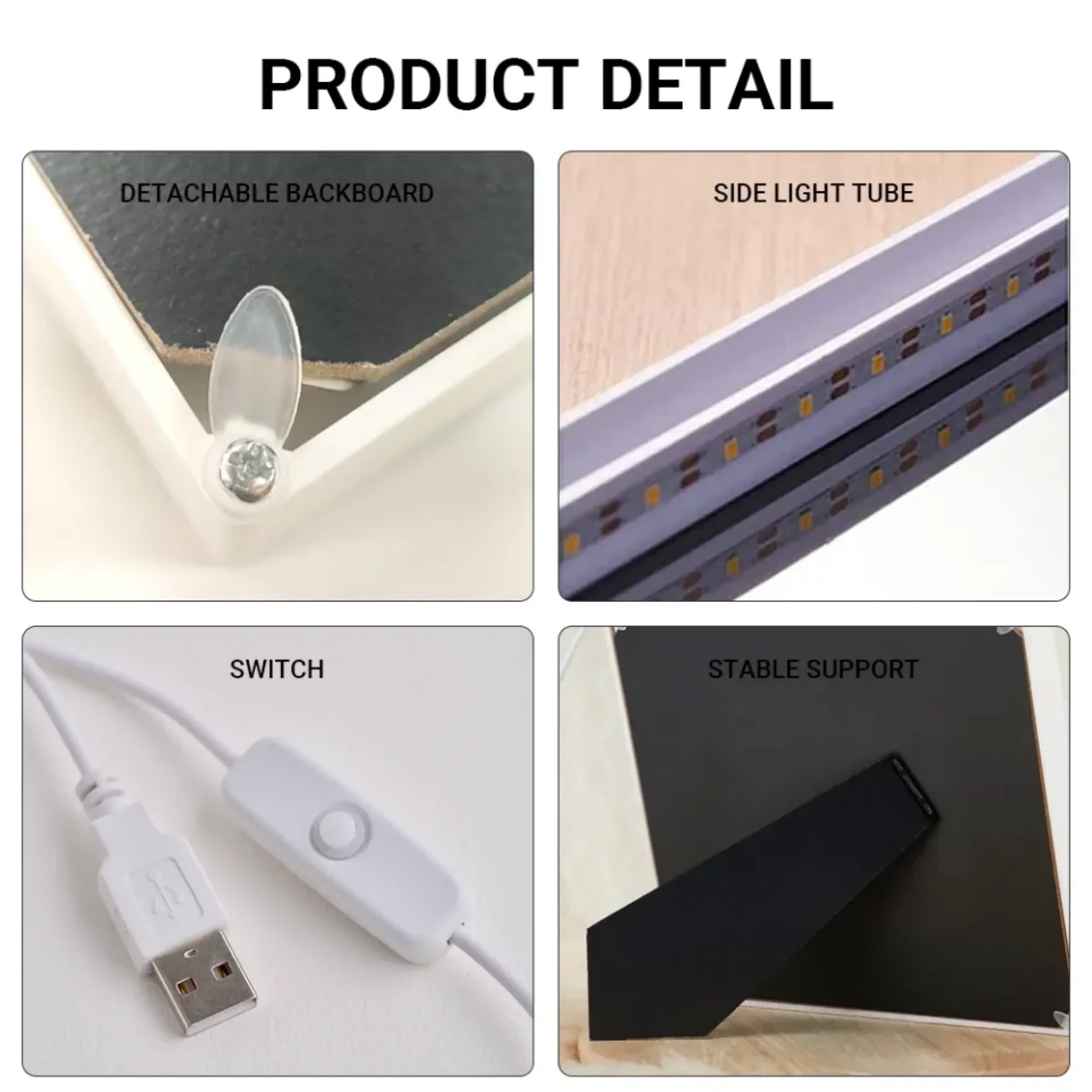 Equipada con un puerto de carga USB, esta lámpara para marco de espejo se recarga fácilmente. Simplemente conéctala a tu computadora, batería externa o cualquier dispositivo con puerto USB mediante el cable incluido. Disfruta de la comodidad de la carga USB en cualquier momento y lugar, asegurando que tu marco de espejo esté siempre listo para usar.