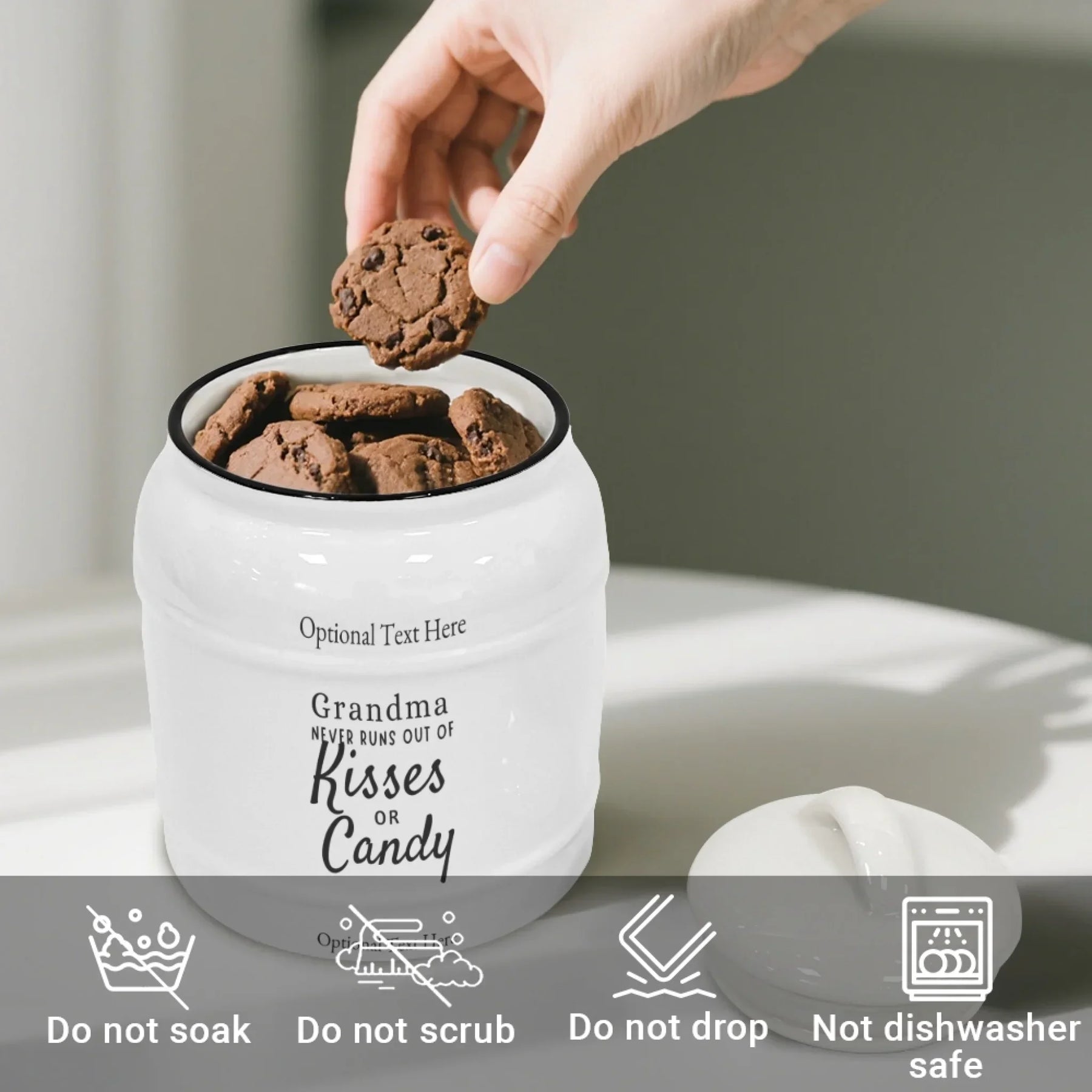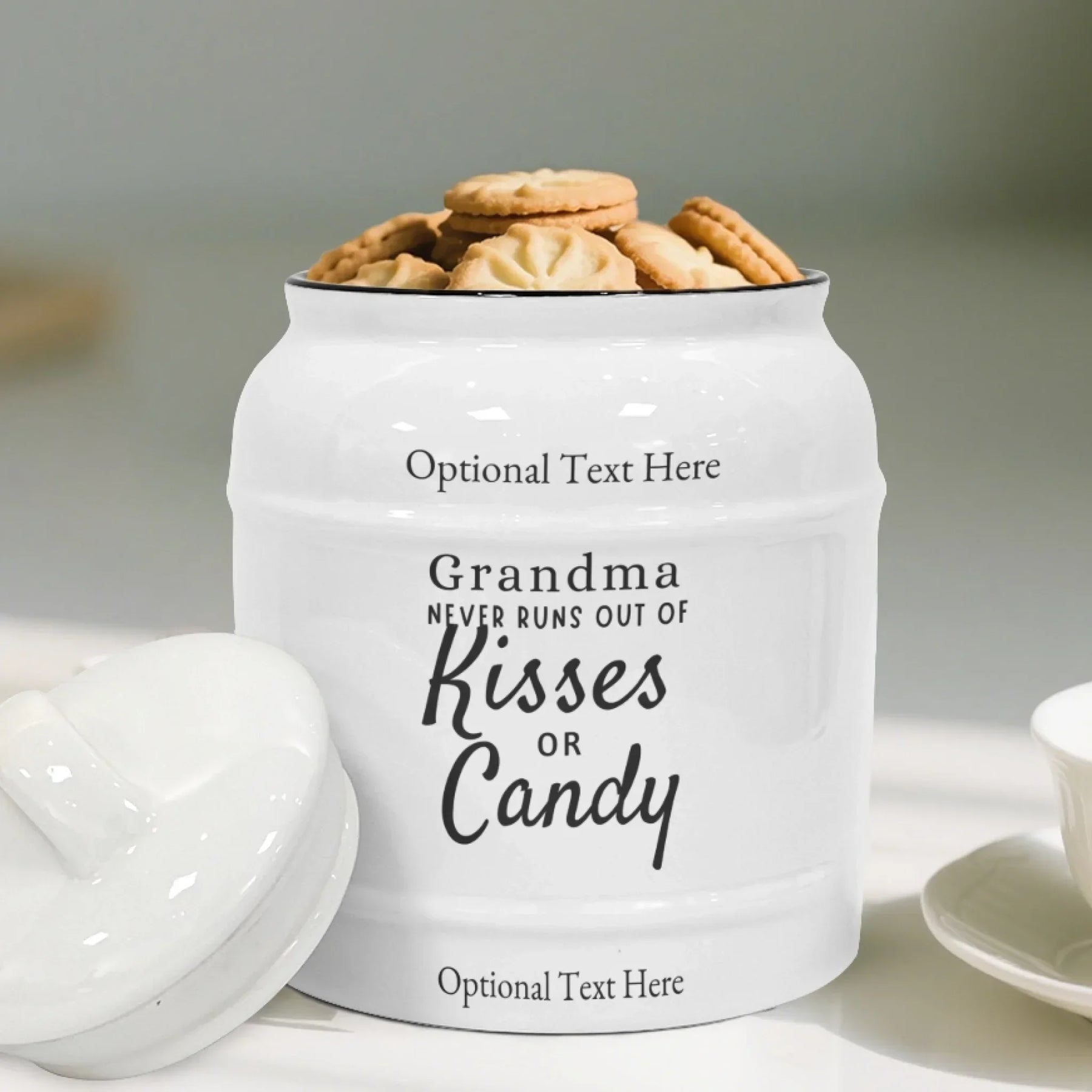 Custom Ceramic Cookie Jar - Grandma Never Runs Out of Kisses or Candy