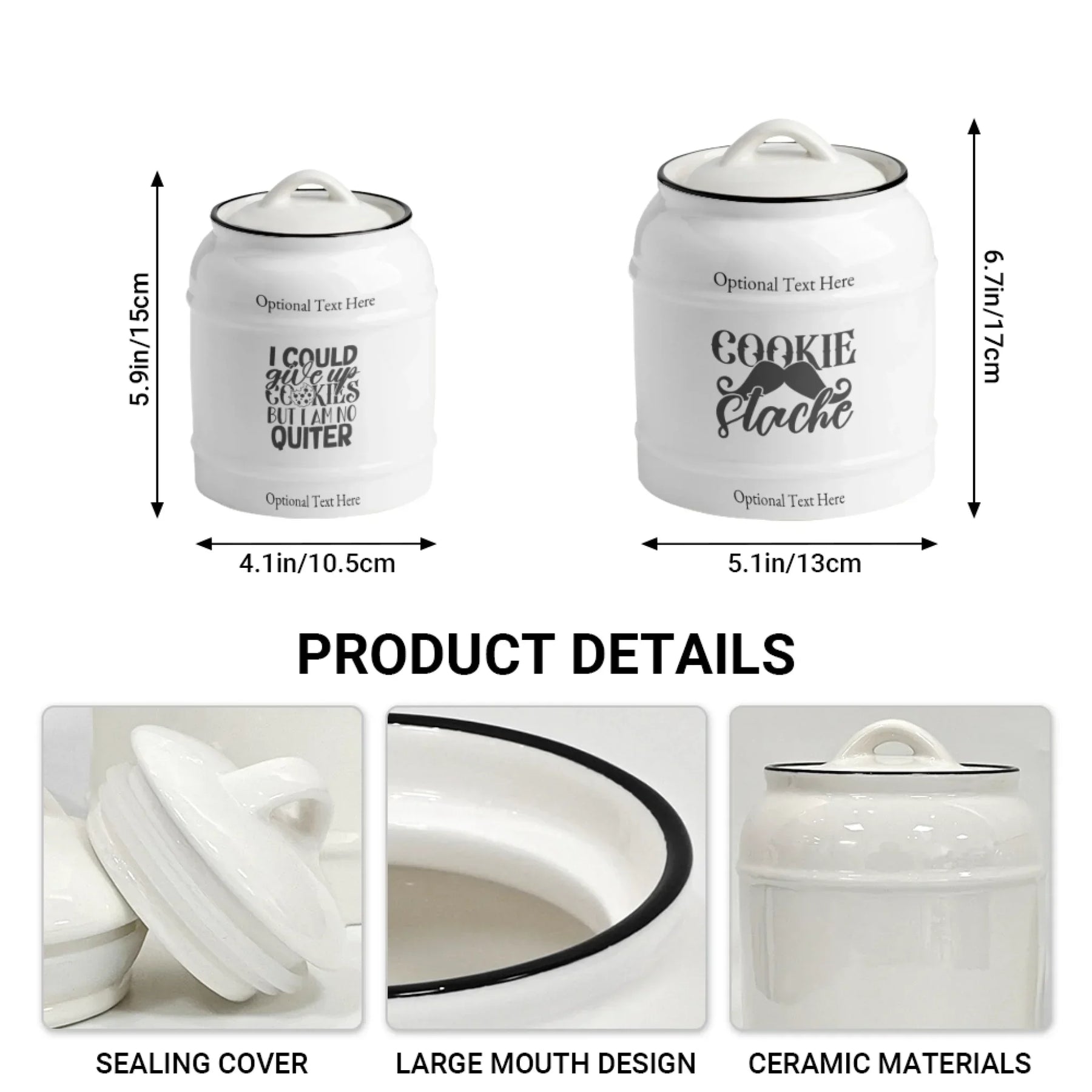 The jar includes your custom design printed on smooth, durable ceramic. The surface delivers a clean and bright backdrop that enhances every quote. The wide opening offers easy access to cookies, snacks, or dry goods. The press-down lid includes a silicone ring for an airtight seal. Your treats stay fresher longer, protected from air, dust, and moisture. The jar is easy to clean and perfect for daily use.
