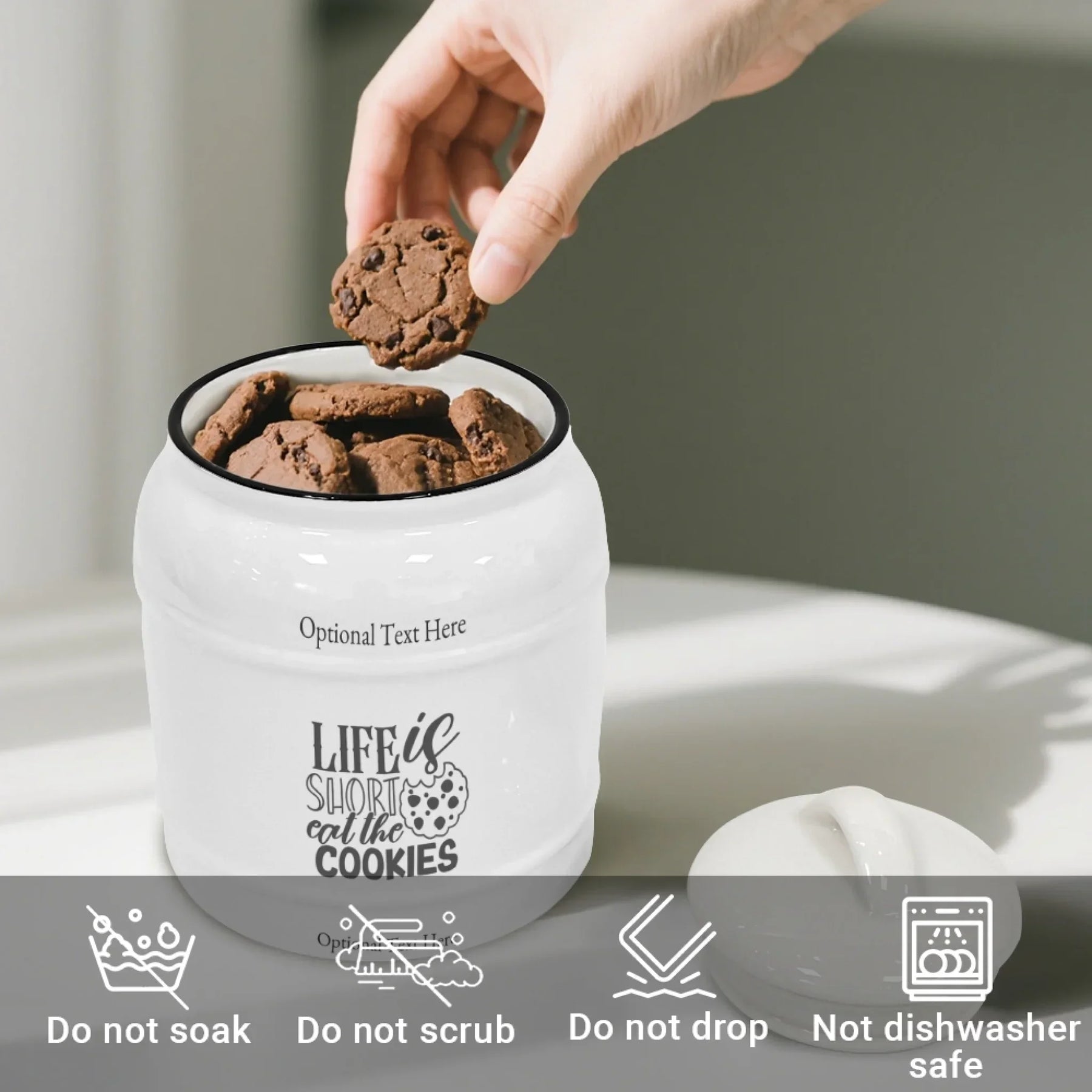 Bring character, joy, and custom style to your kitchen with this versatile and beautifully designed custom quote cookie jar.