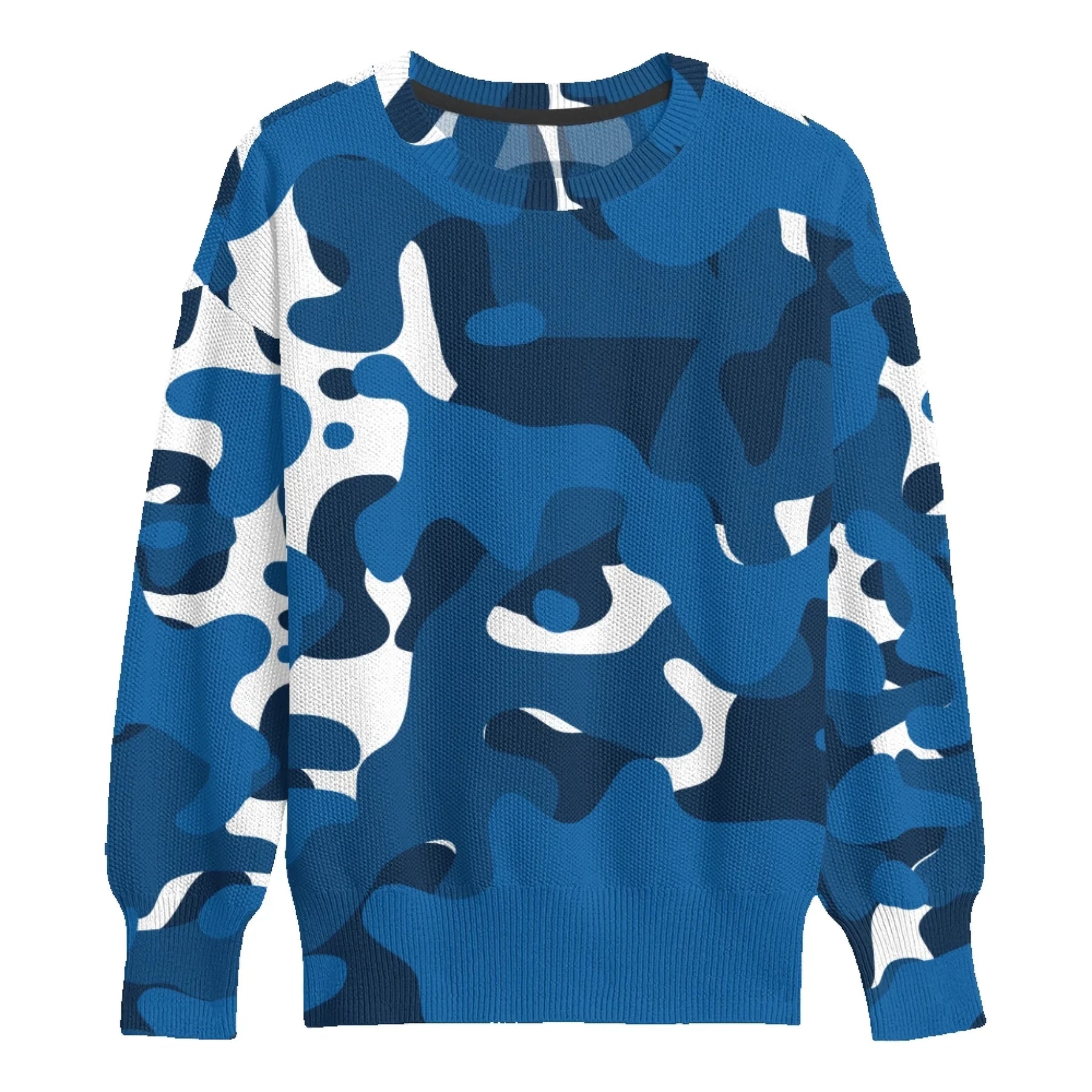 Available in adult, kids, and baby sizes, this Camouflage Knit Sweater offers a stylish and functional option for everyone. Make a bold statement with your custom camo design.