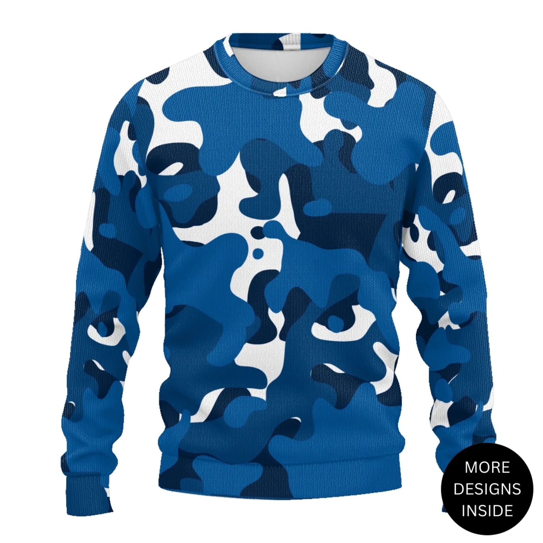 Our custom knit sweaters feature durable, high-quality camouflage patterns. Each piece is crafted to ensure softness, warmth, and lasting wear. Personalize your sweater to create a unique look that fits your style perfectly.