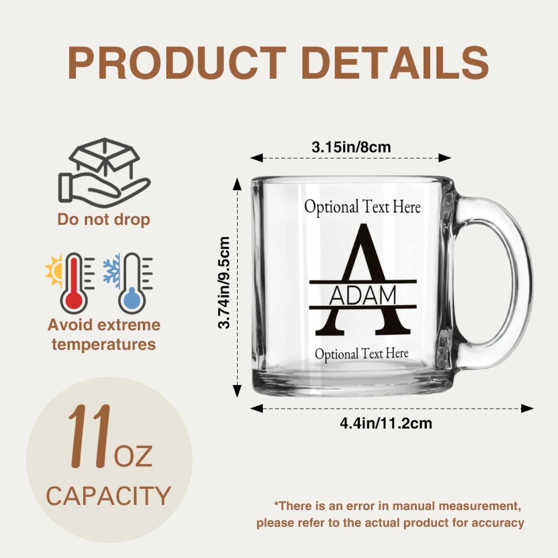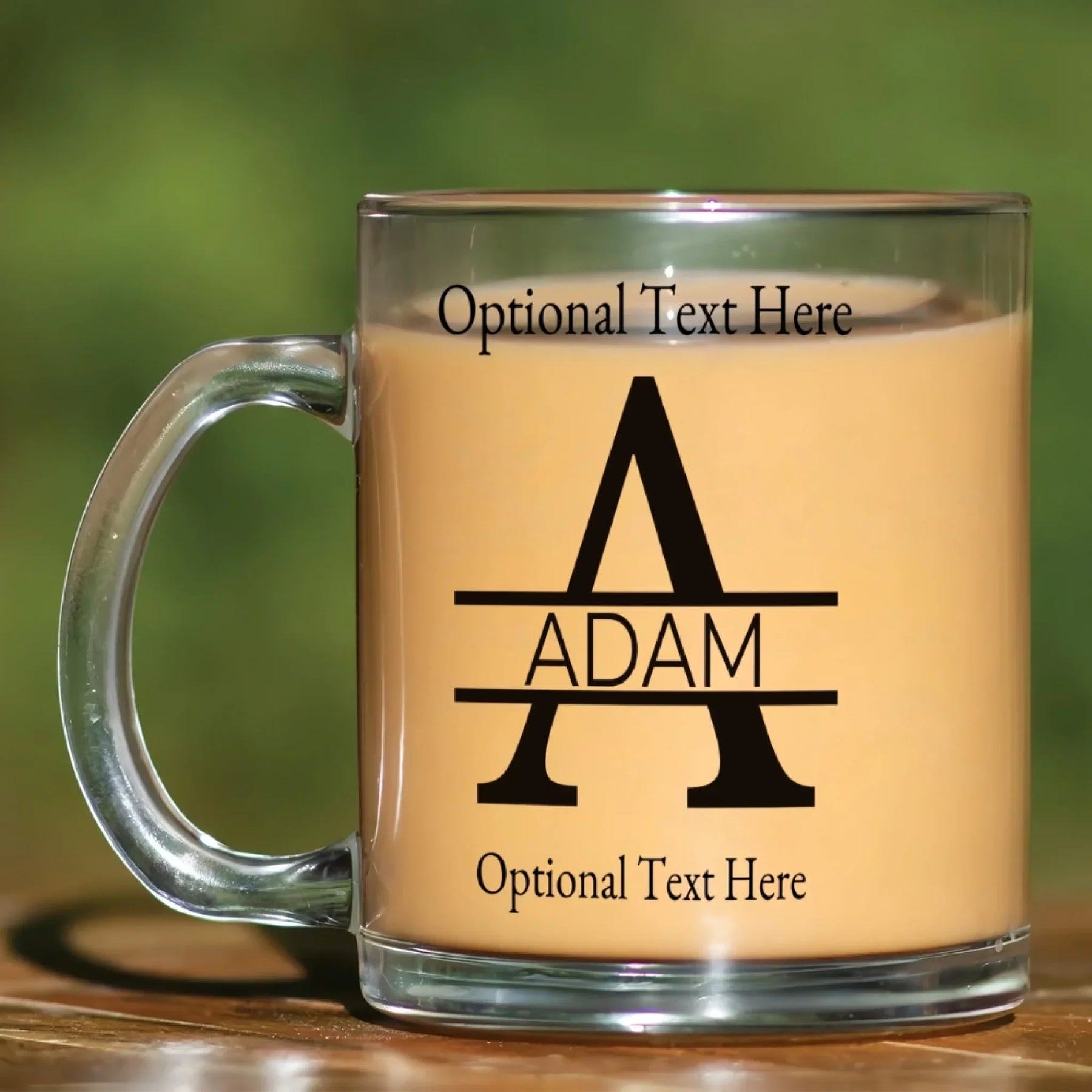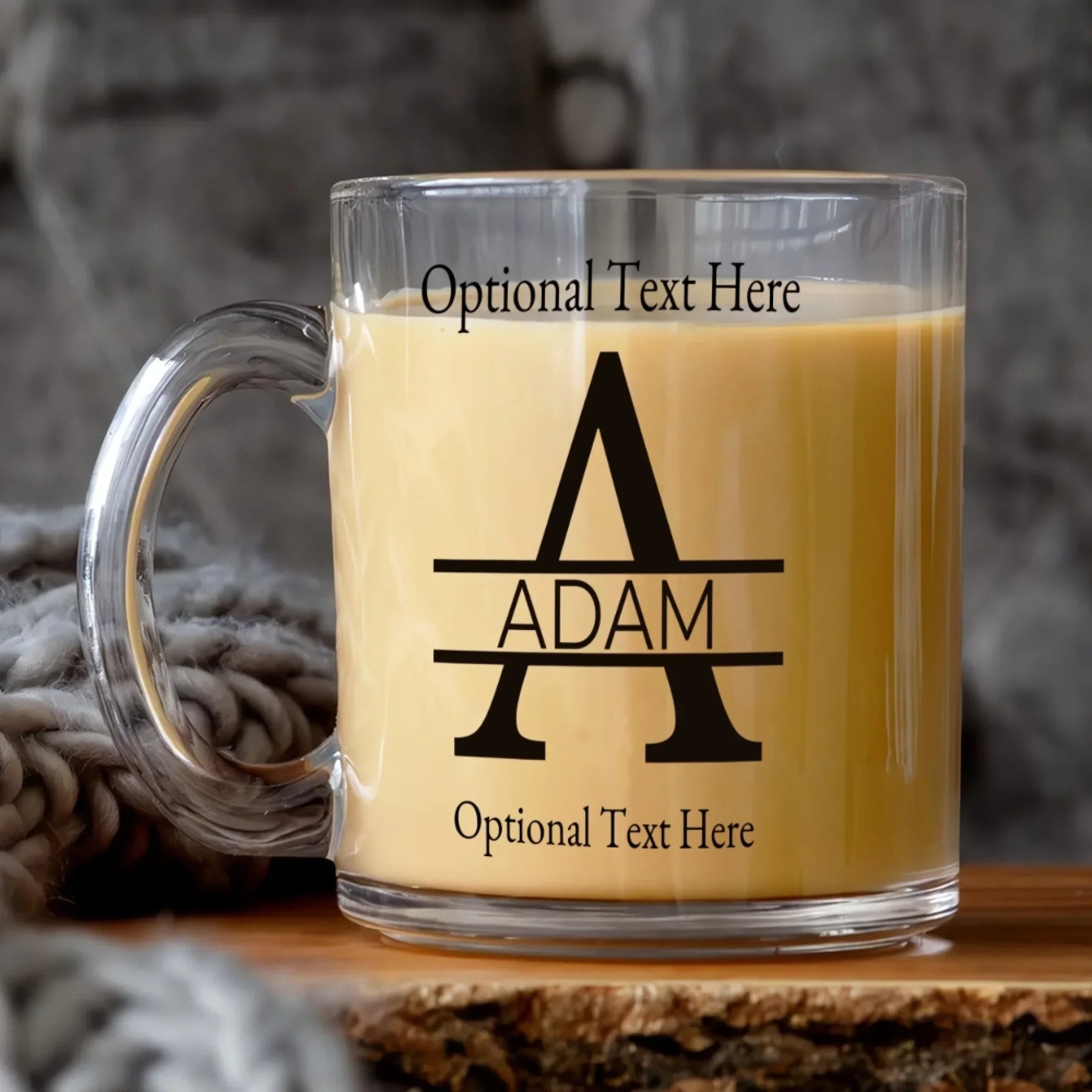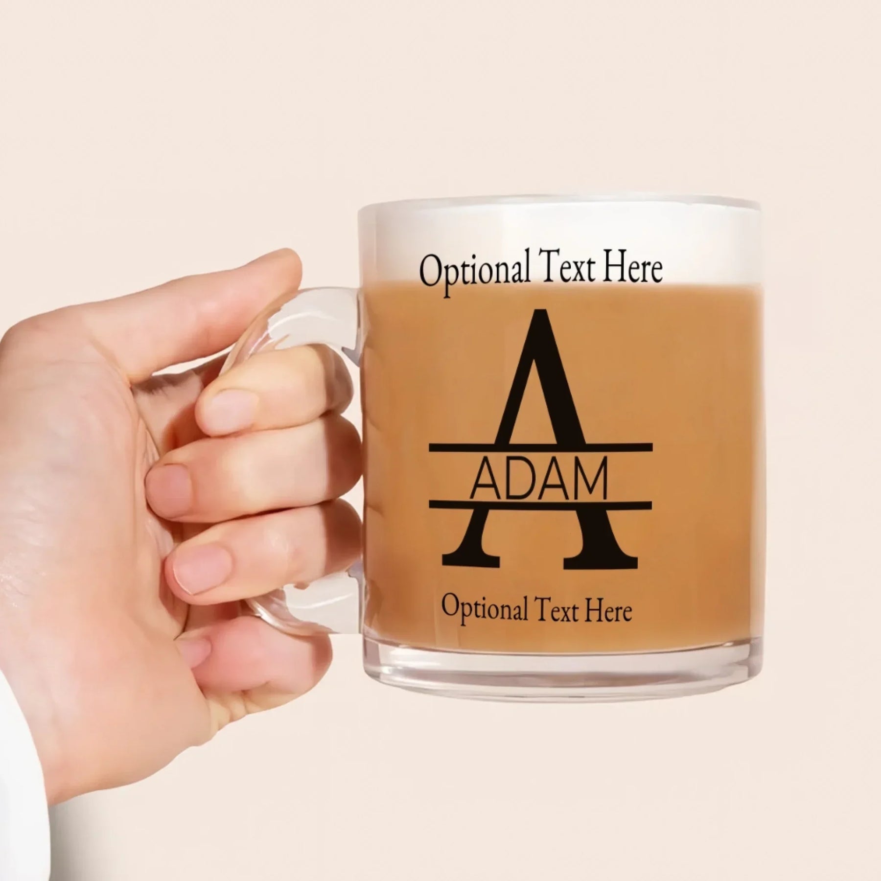 Elevate your daily beverage experience with this custom glass mug, designed for style, comfort, and personalization. Crafted from premium, professional-quality glass, this 11oz mug combines elegance with practicality. Its transparent design showcases your custom monogram, name, and optional text in crisp, vibrant detail, making it a unique addition to any kitchen, office, or café setting.