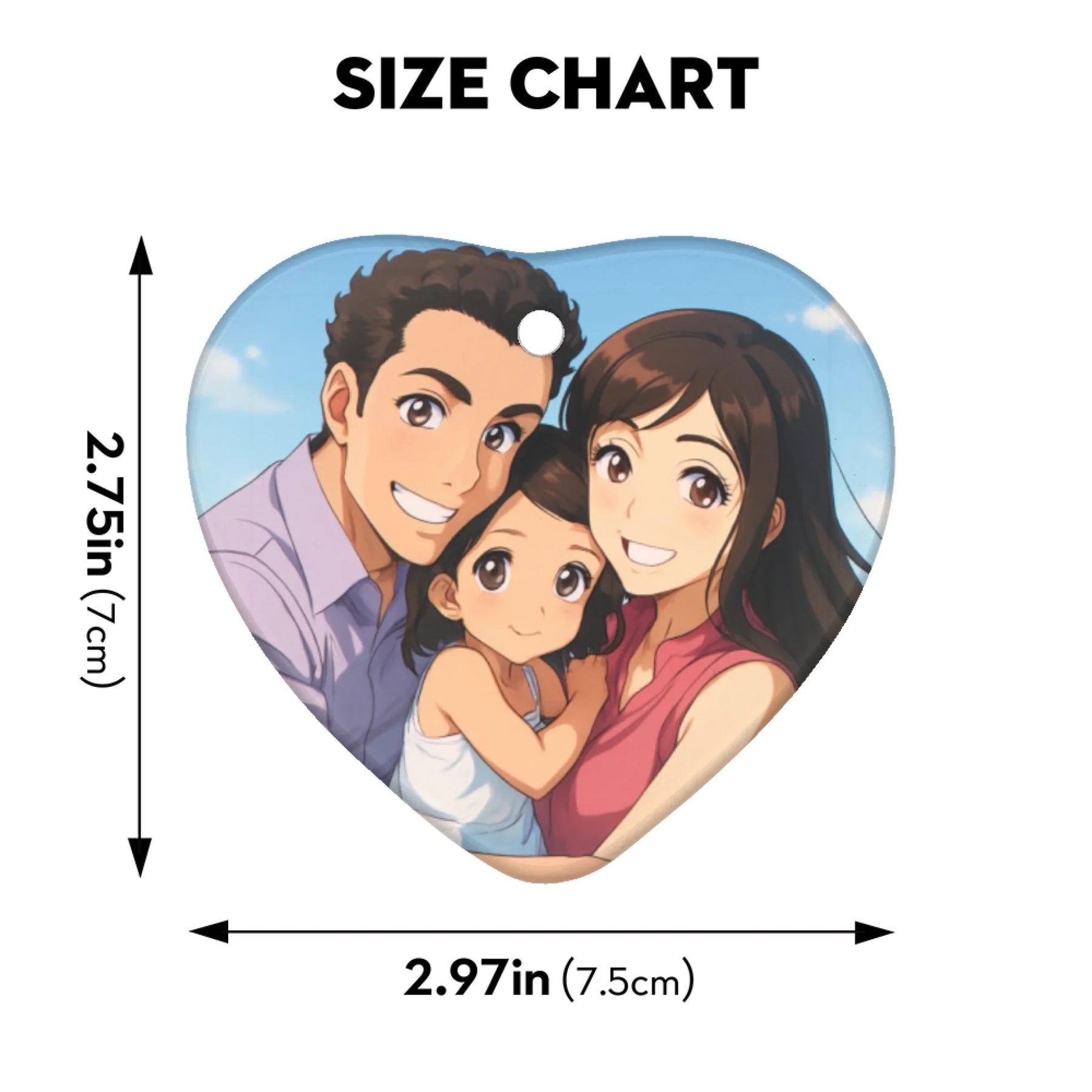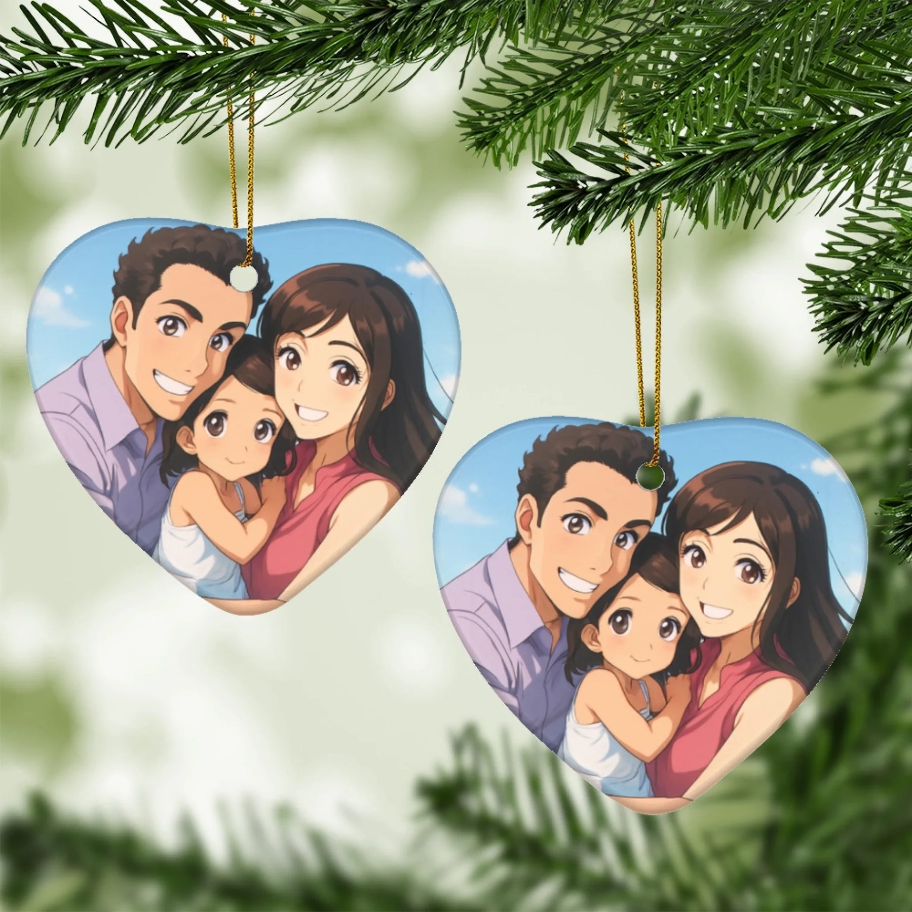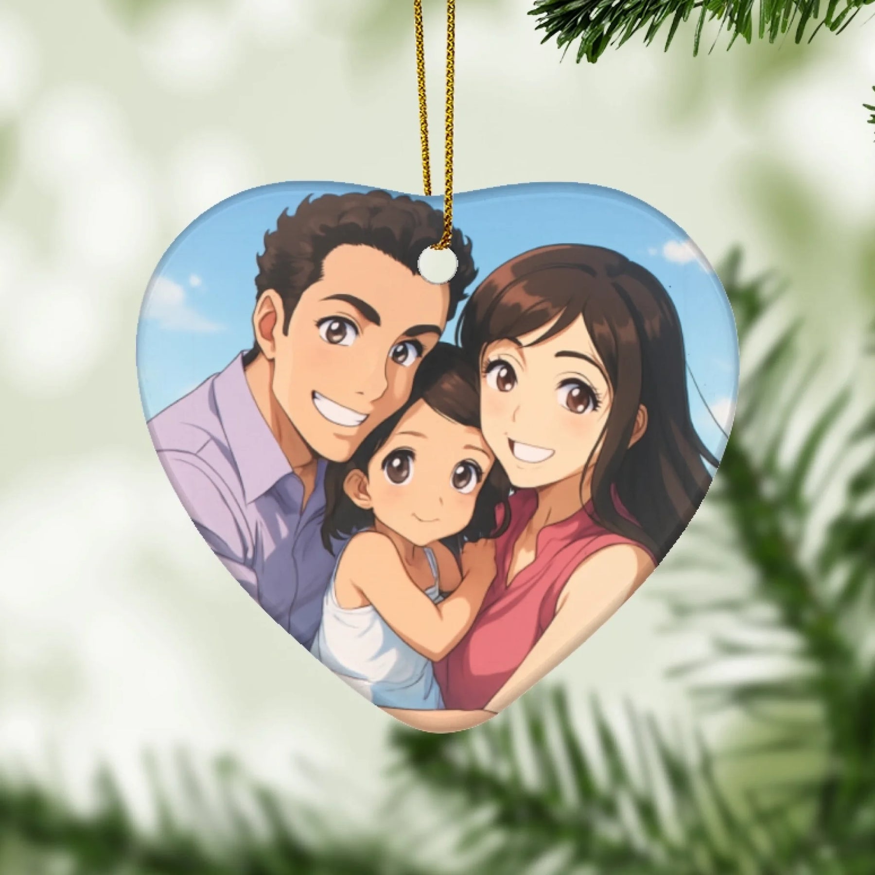 Transform your favorite photo into a stylish keepsake with this modern anime ornament. Each ornament features a vibrant, anime-inspired illustration with a sleek, contemporary style. Choose from ceramic, glass, or pewter snowflake materials. Ceramic and glass are available in circle or heart shapes, perfect for personalized designs.