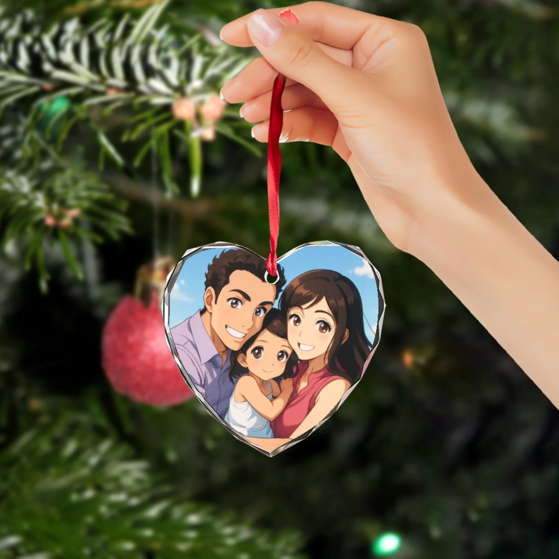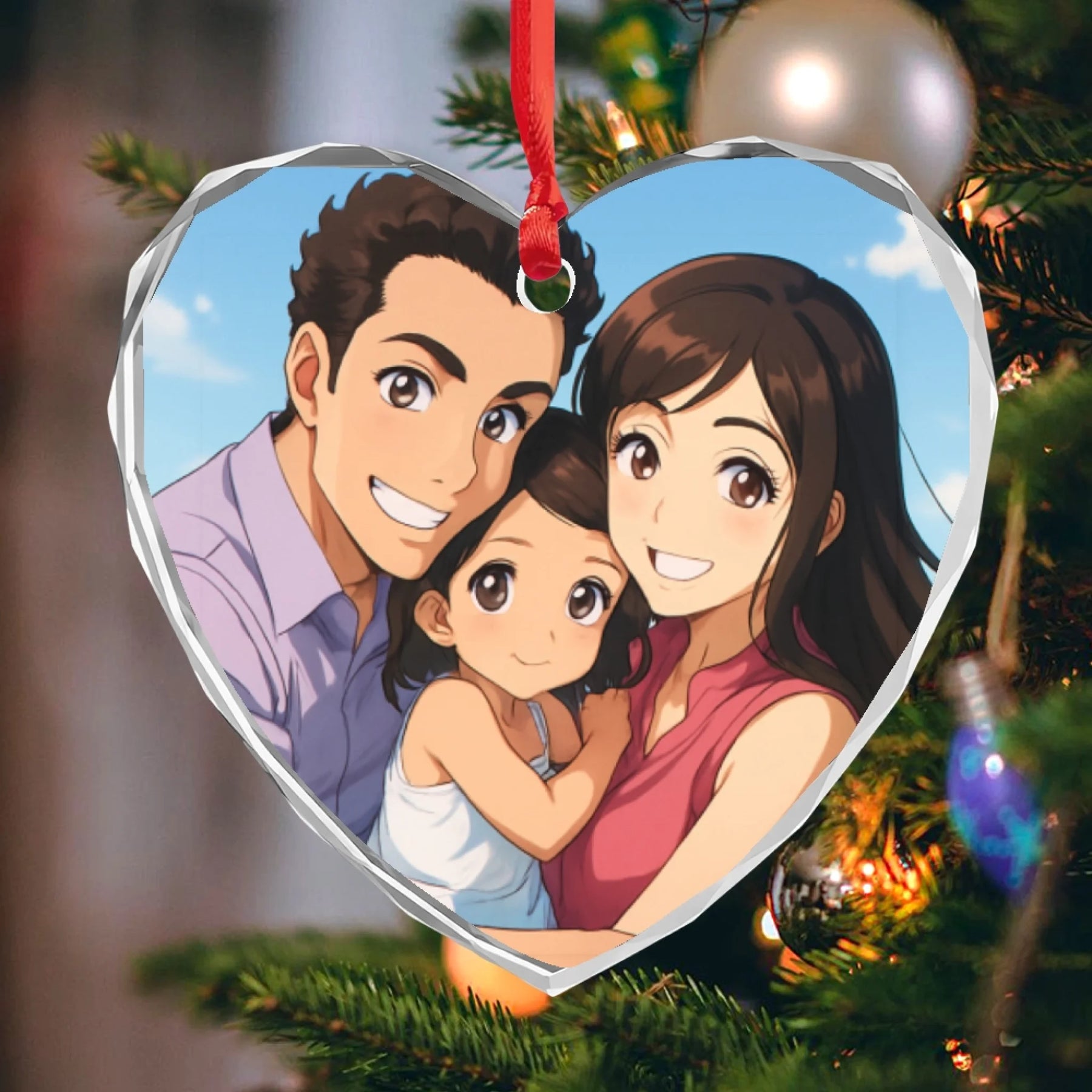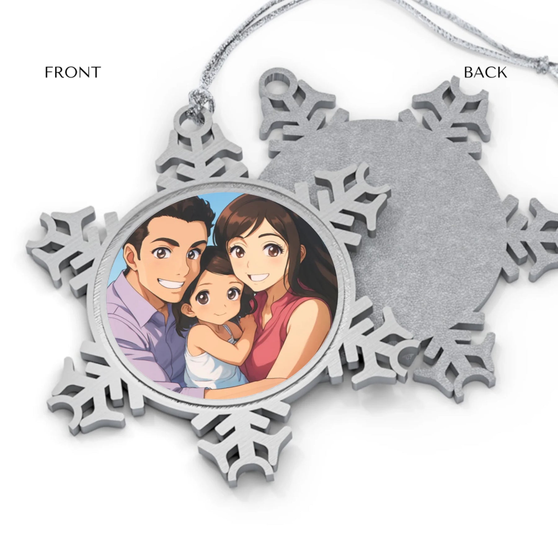 Transform your favorite photo into a stylish keepsake with this modern anime ornament. Each ornament features a vibrant, anime-inspired illustration with a sleek, contemporary style. Choose from ceramic, glass, or pewter snowflake materials. Ceramic and glass are available in circle or heart shapes, perfect for personalized designs.