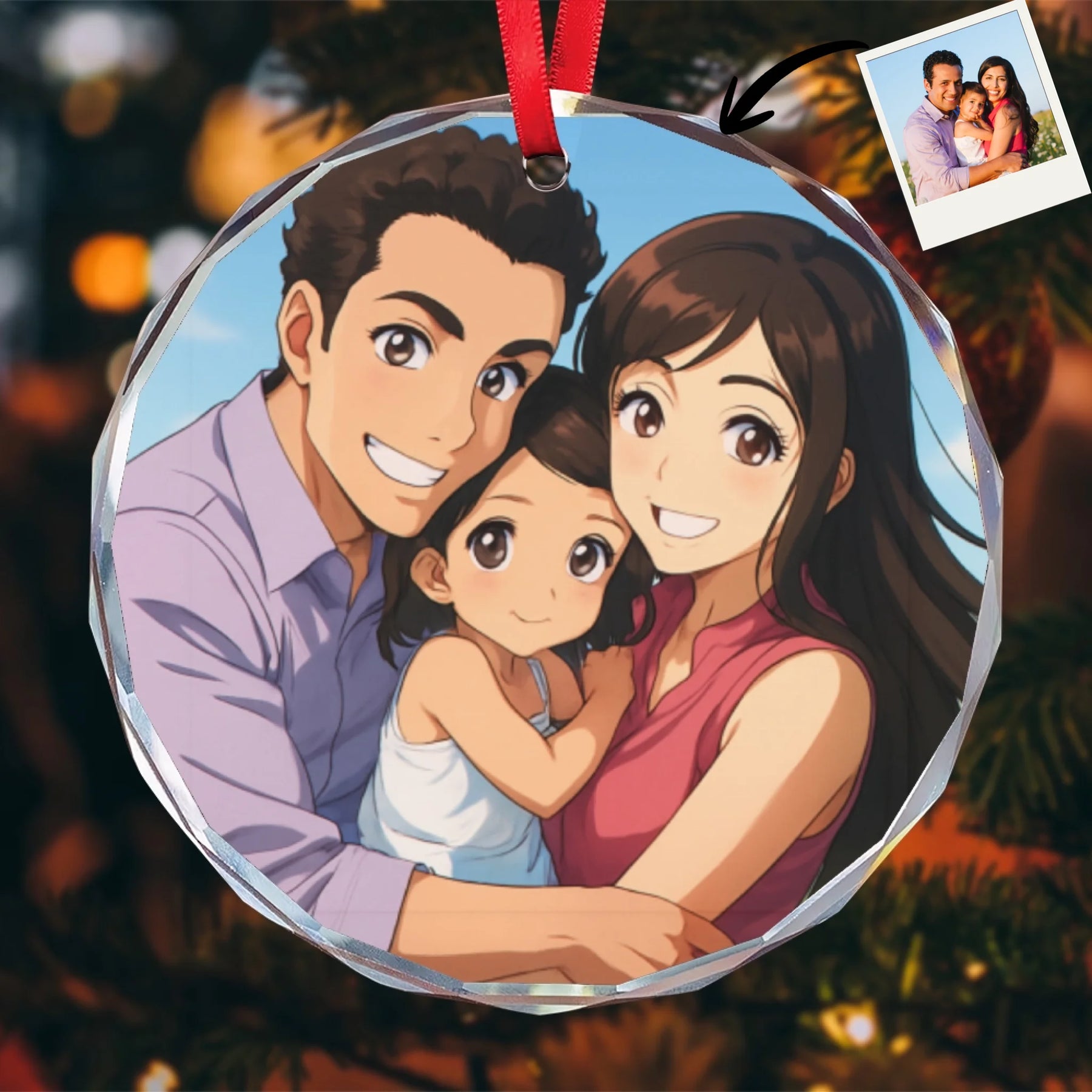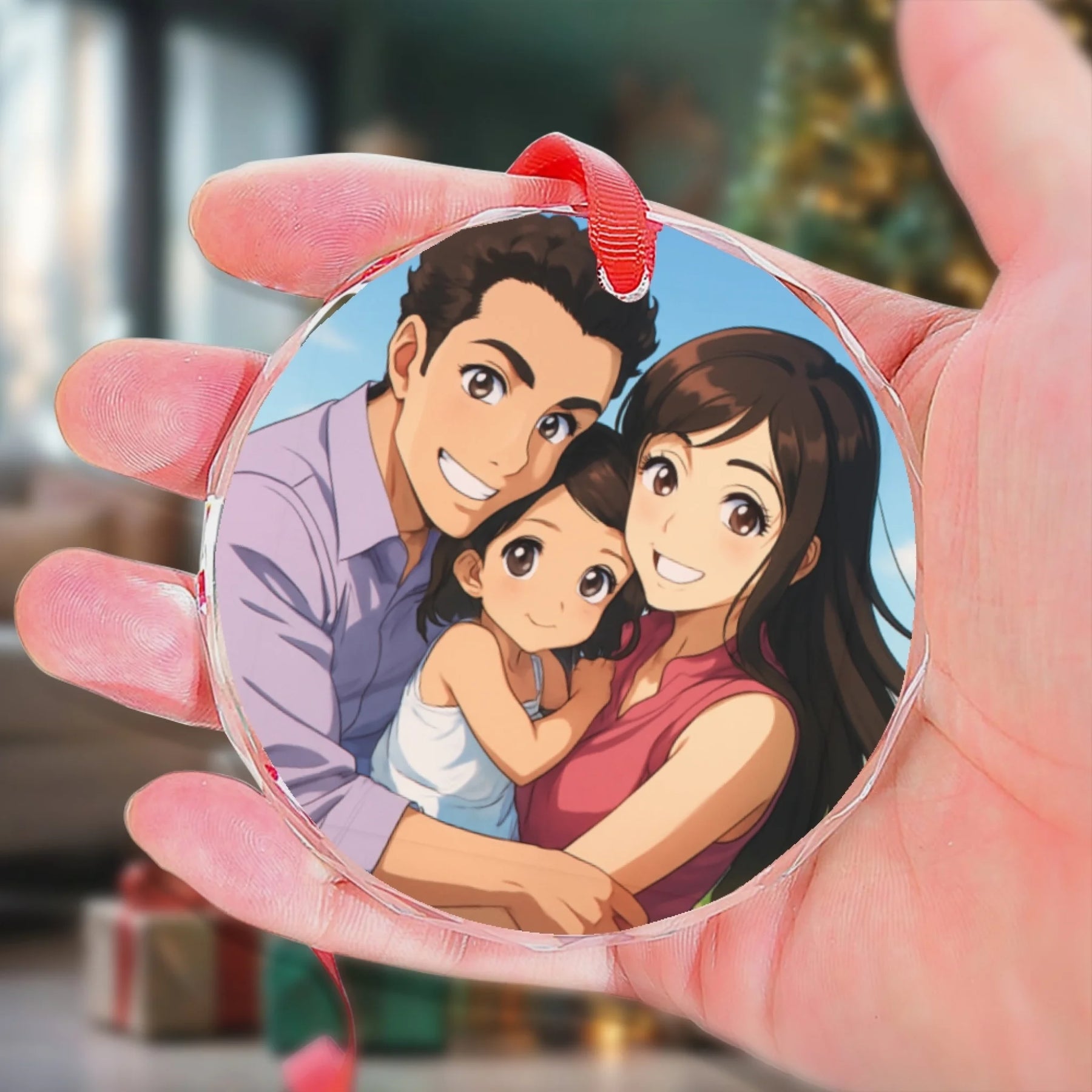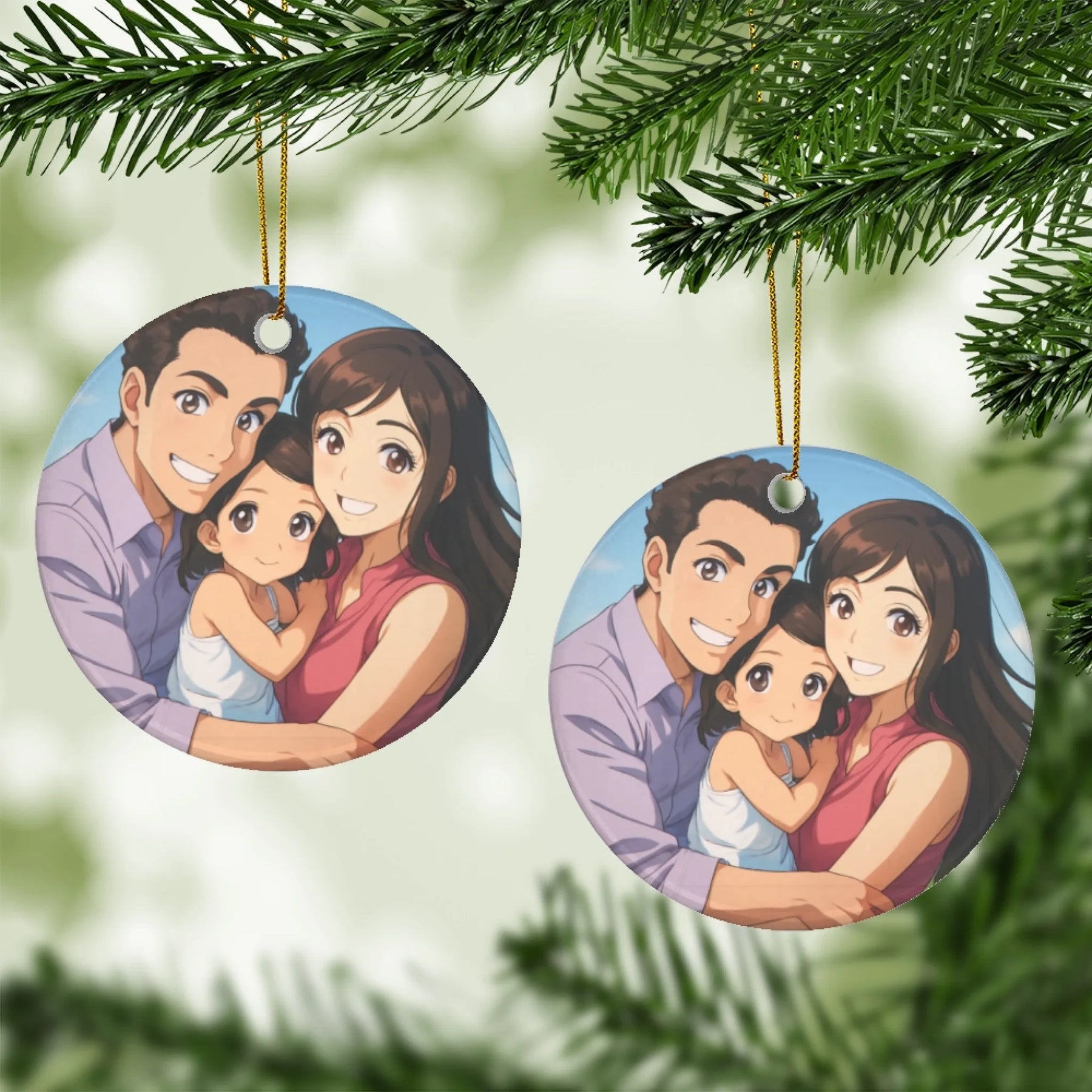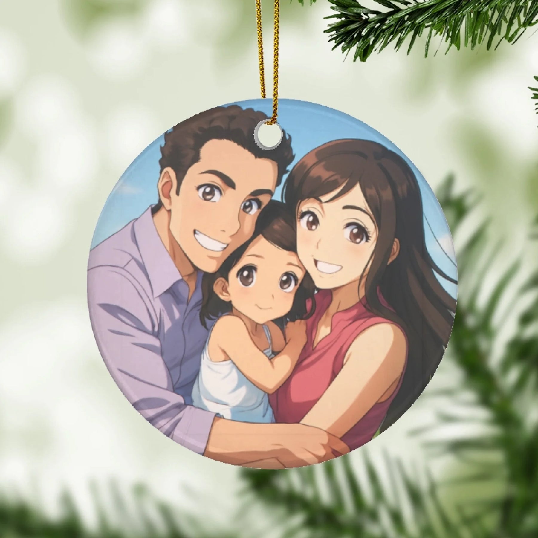 This modern anime ornament transforms your photo into sleek, stylized artwork. Personalize with names, dates, or messages to create a meaningful keepsake. Ideal for anime fans, families, couples, or anyone who loves contemporary anime designs.