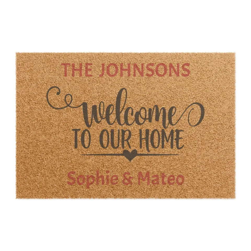 Reciba a sus invitados con el felpudo de fibra de coco personalizado de ARTFULANE, cuidadosamente diseñado para combinar artesanía ecológica con un estilo atemporal. Hecho de fibra de coco sostenible de grado A, este felpudo de 61 x 40 cm es duradero, eficaz para atrapar la suciedad e ideal para exteriores. Su reverso de vinilo negro garantiza que se mantenga firmemente en su lugar, convirtiéndolo en una opción funcional y elegante para cualquier entrada. Personalizable para reflejar su gusto único, este felpudo añade un toque cálido y personal a su entrada.