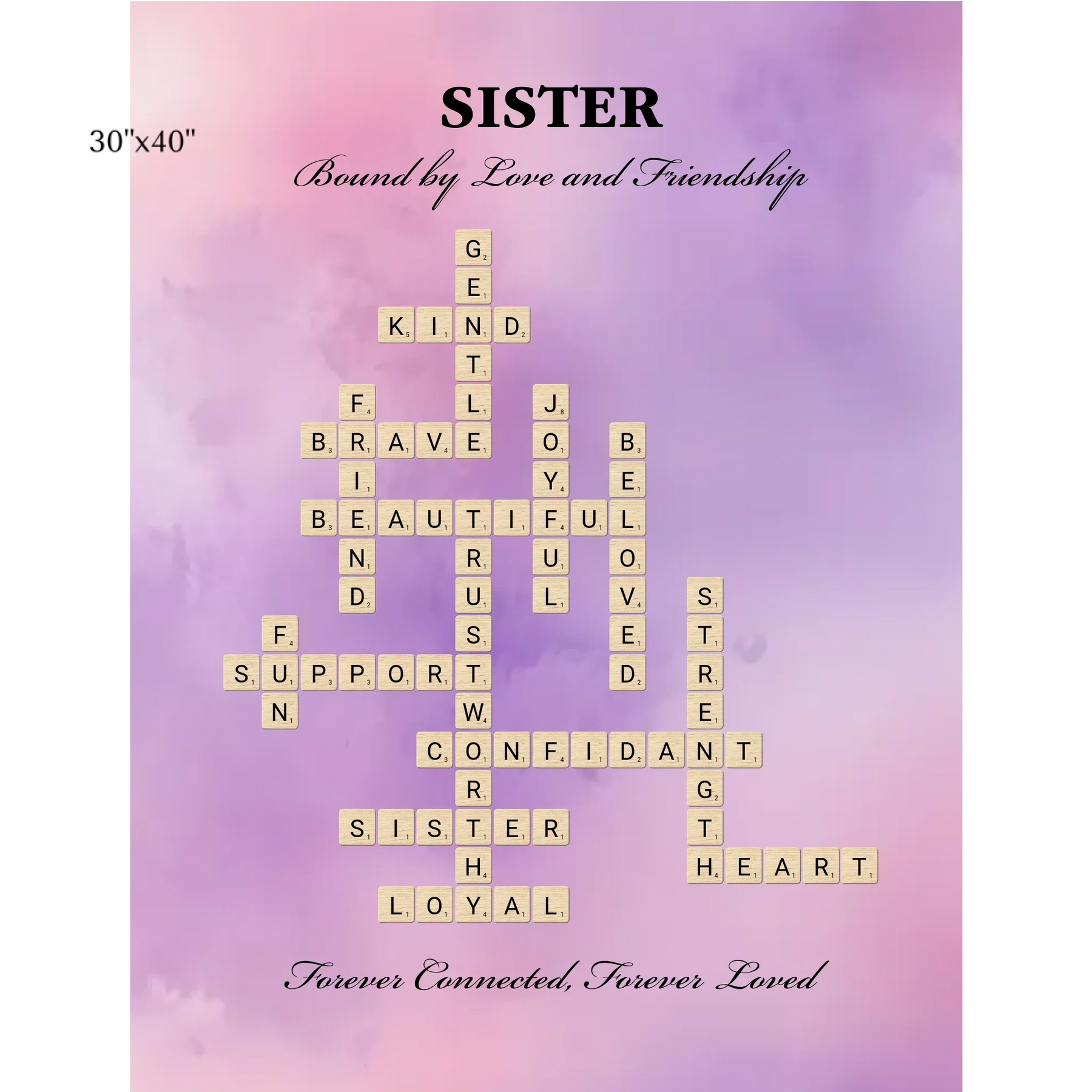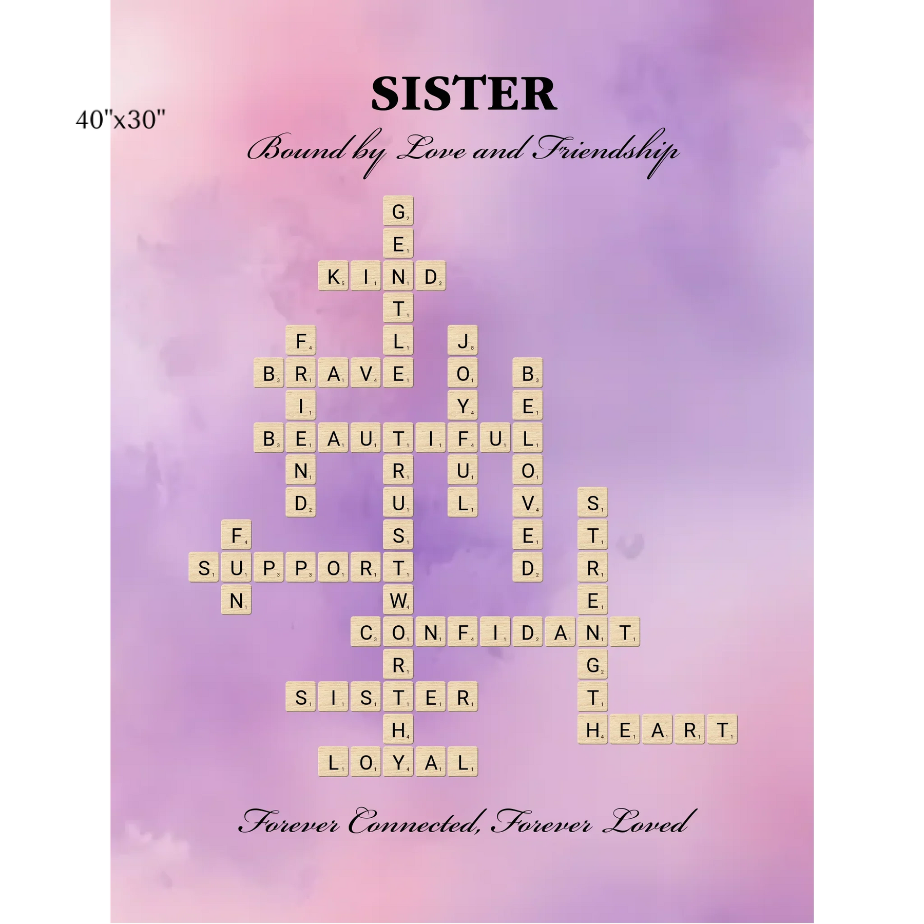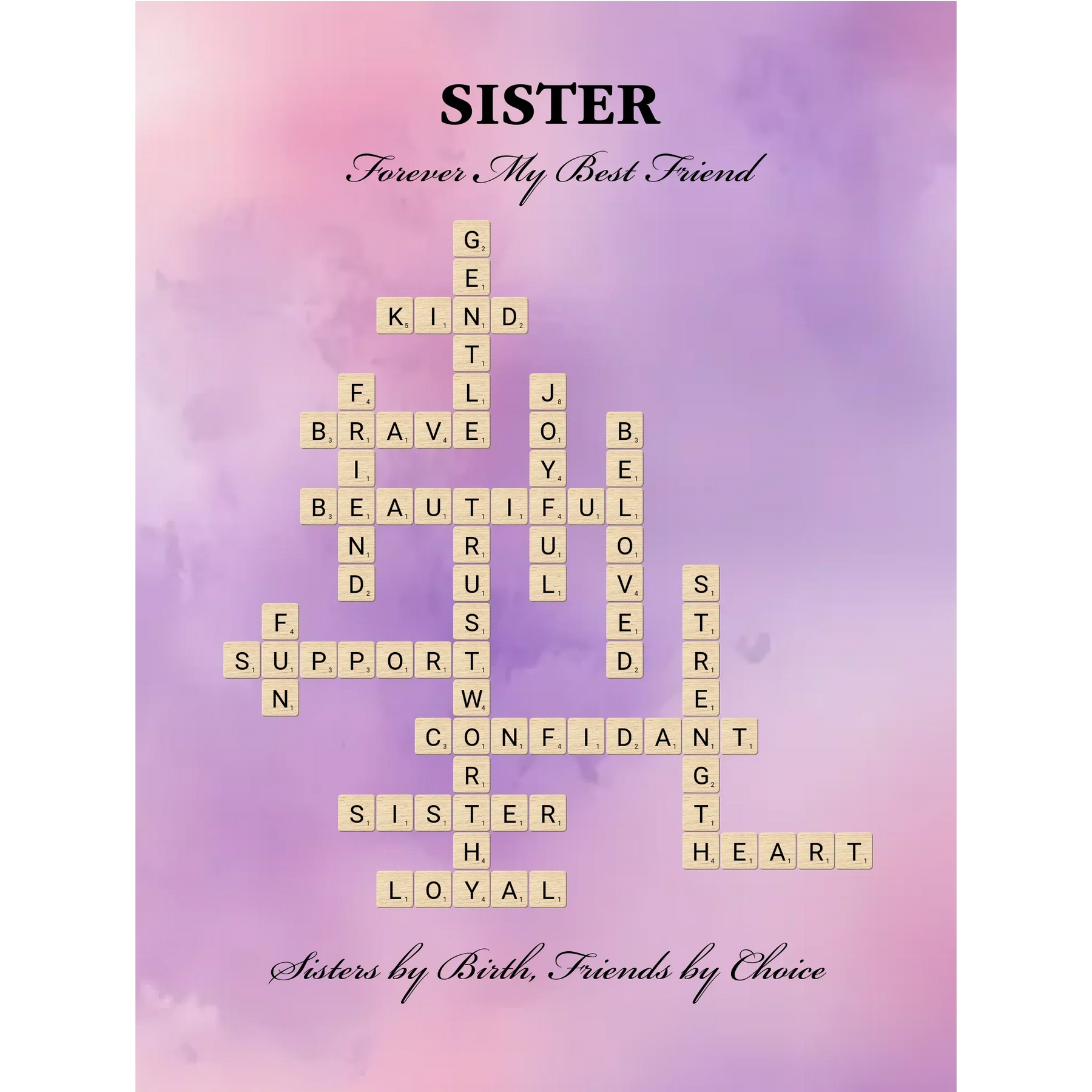 - Palabras seleccionadas para hermana : un rompecabezas de palabras prediseñado que celebra a las hermanas con palabras significativas.