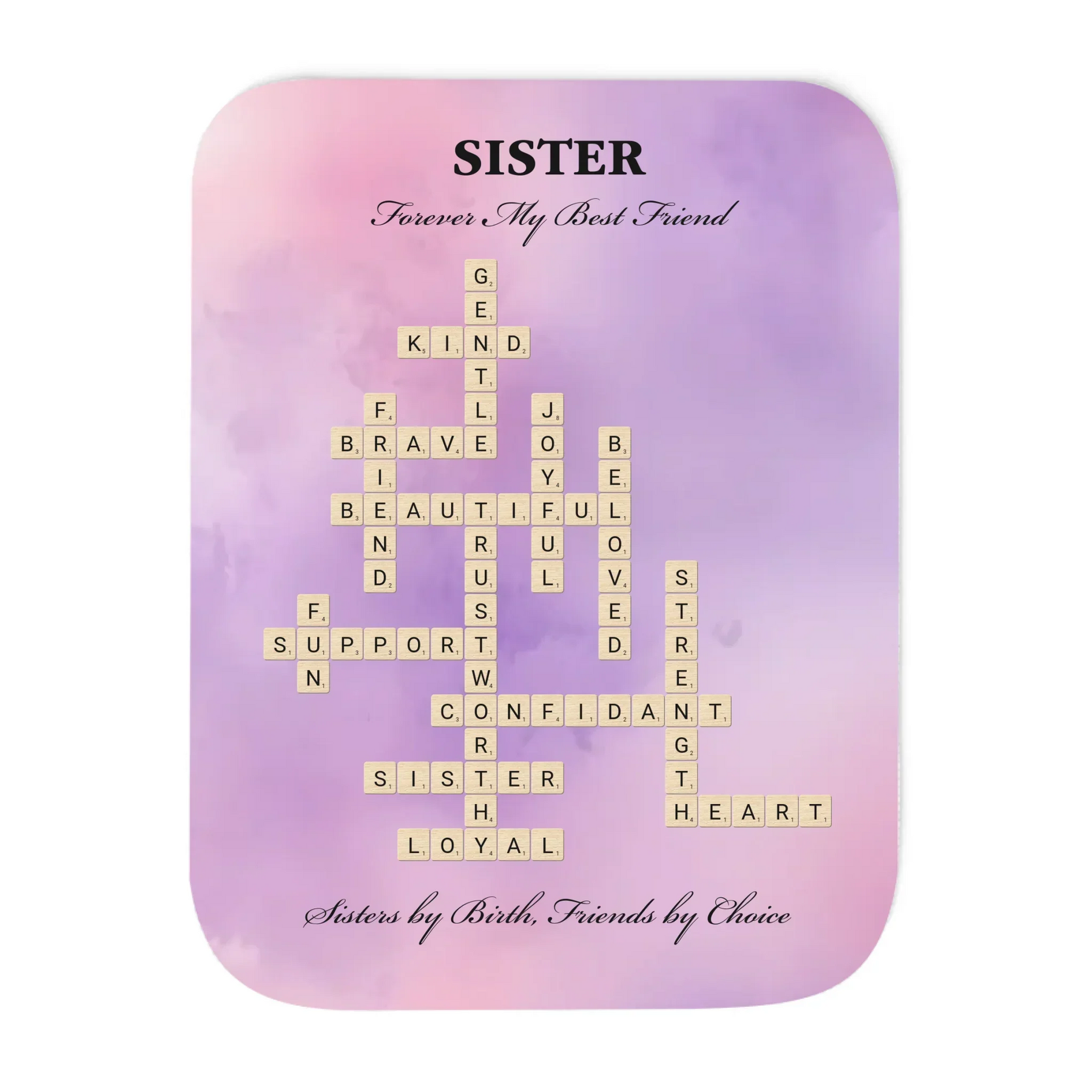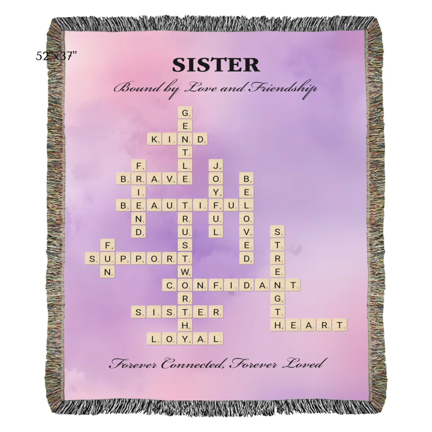 Disponible en microfibra de terciopelo, sherpa y opciones tejidas 100 % algodón en varios tamaños, esta manta combina un sentimiento sincero y una calidez acogedora, lo que la convierte en un regalo preciado para cualquier hermana.
