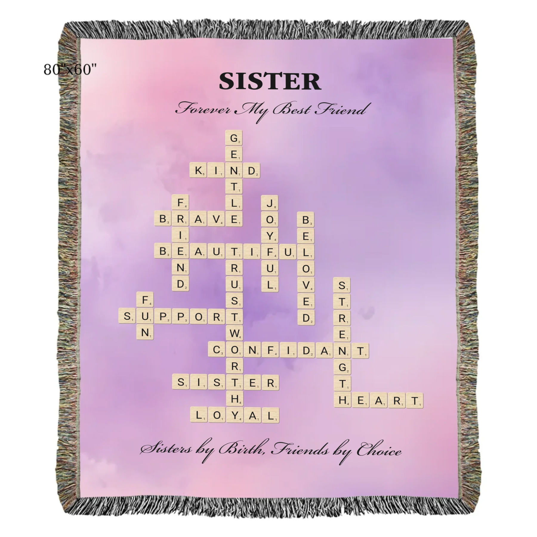 Manta personalizada con palabras de hermana - Manta personalizada con diseño de arte de palabras