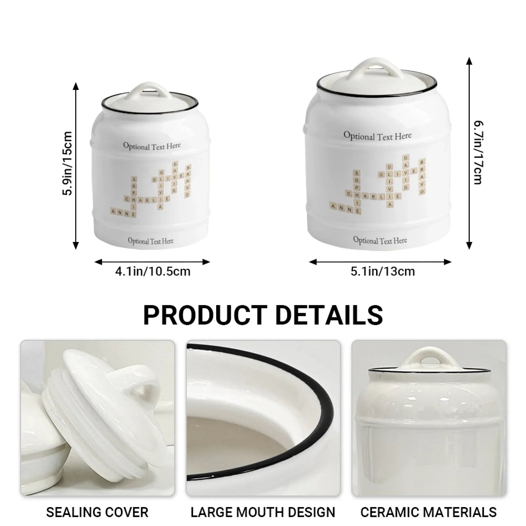 Elevate your storage with a personal touch. This custom word tile ceramic jar combines function, durability, and emotional value in a single, beautifully designed piece. Whether giving as a thoughtful gift or enhancing your own kitchen, it delivers style and sentiment in equal measure.