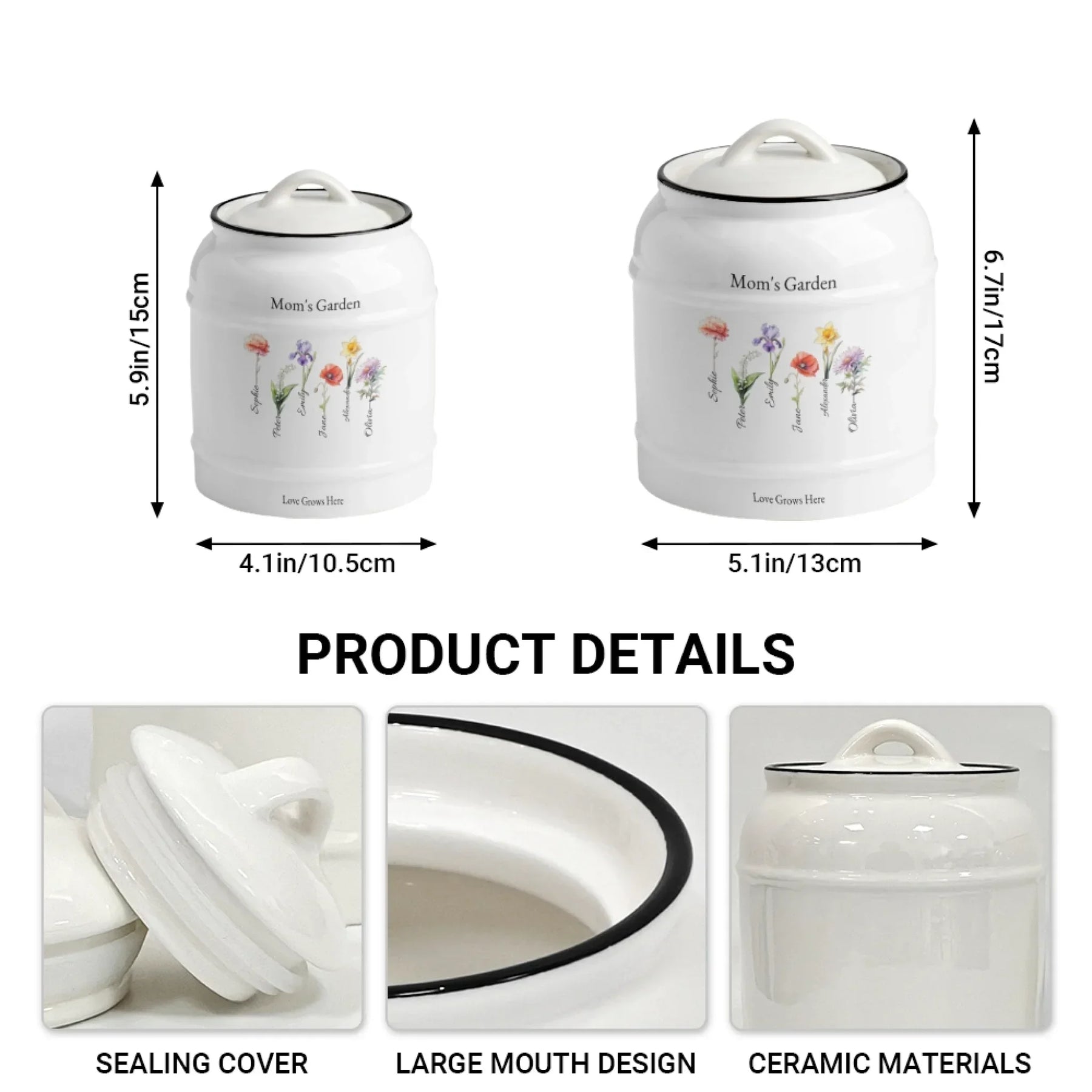 This cookie jar makes a thoughtful gift for many occasions. It is perfect for Mother’s Day, birthdays, Christmas, or anniversaries. It makes a beautiful housewarming gift for couples. It is also ideal for grandparents who cherish personalized keepsakes. Bakers, gardeners, and flower lovers adore this design. The jar feels premium, meaningful, and timeless.