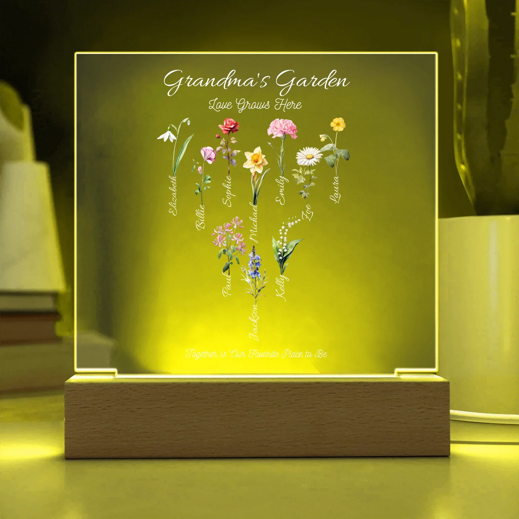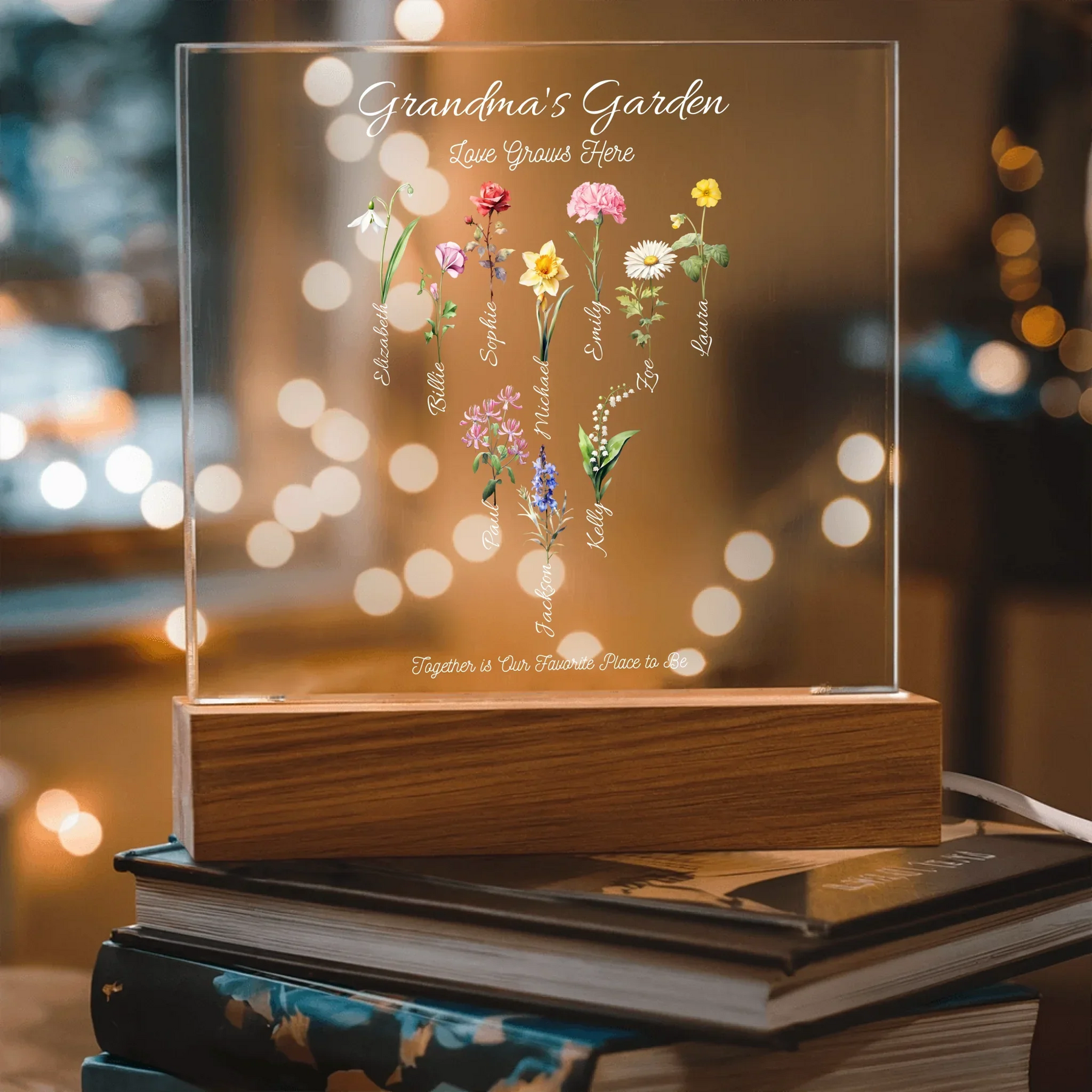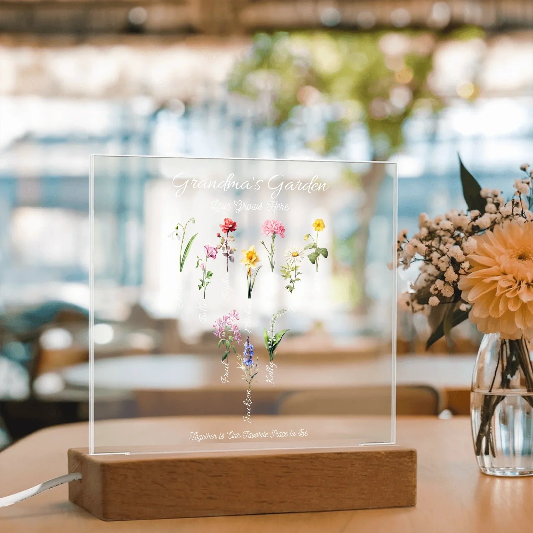 Custom Watercolor Birth Month Flowers LED Acrylic Plaque