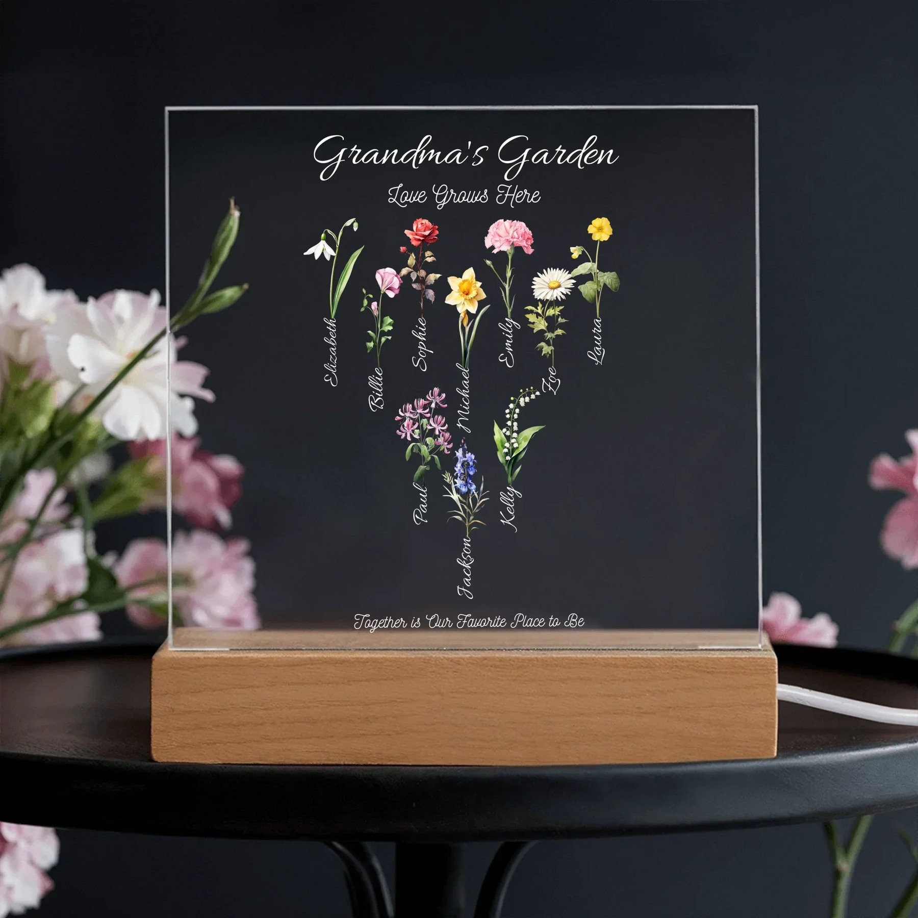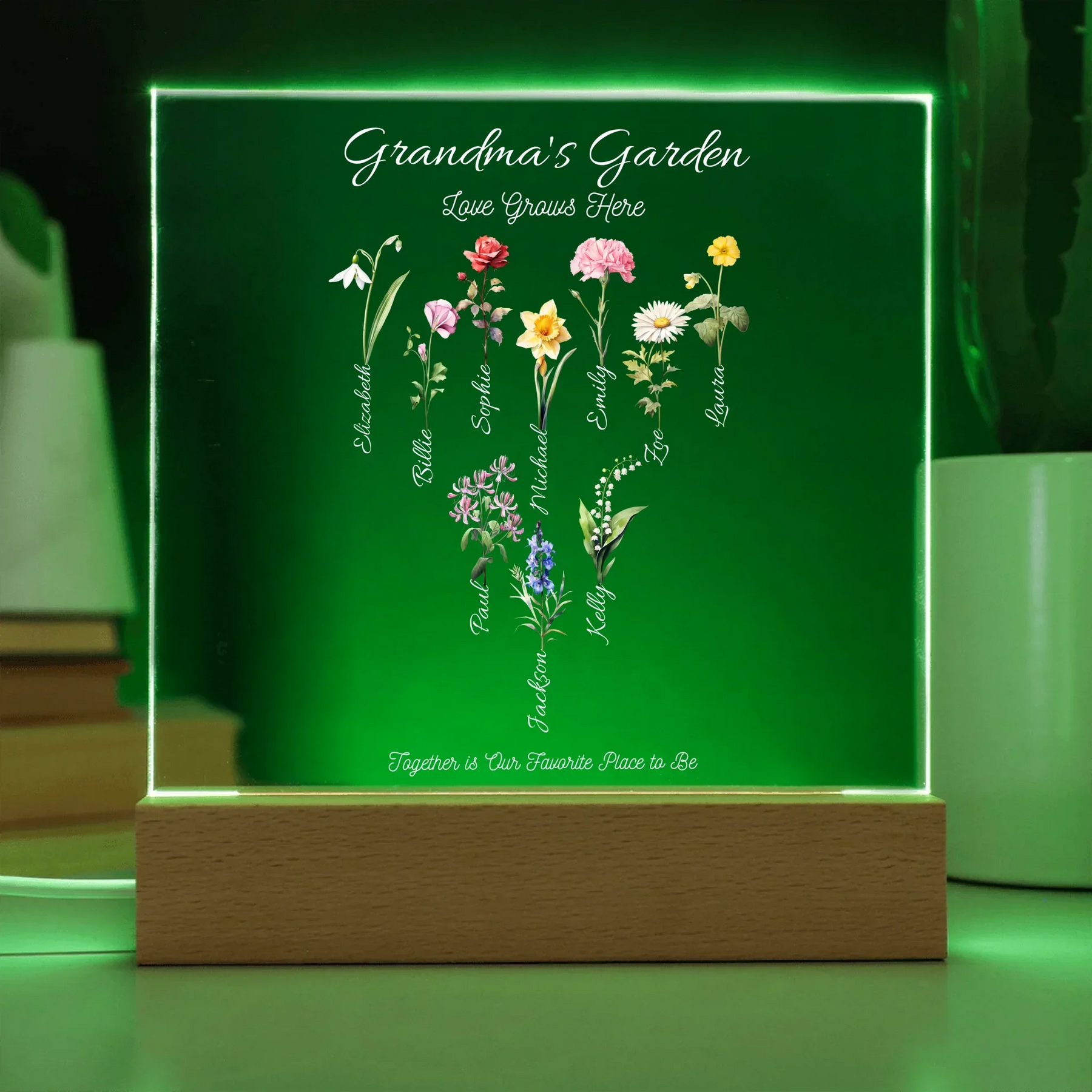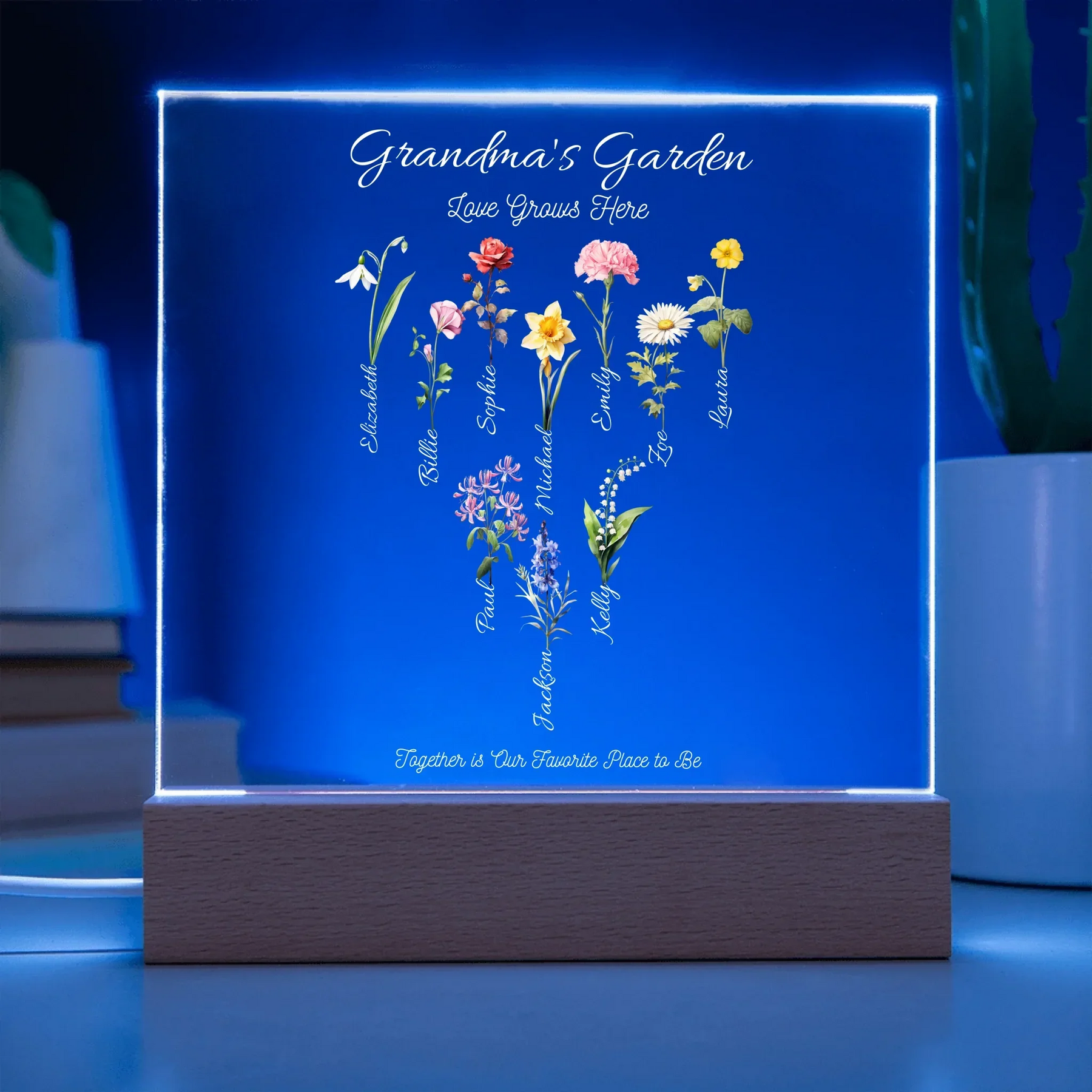 Custom Watercolor Birth Month Flowers LED Acrylic Plaque
