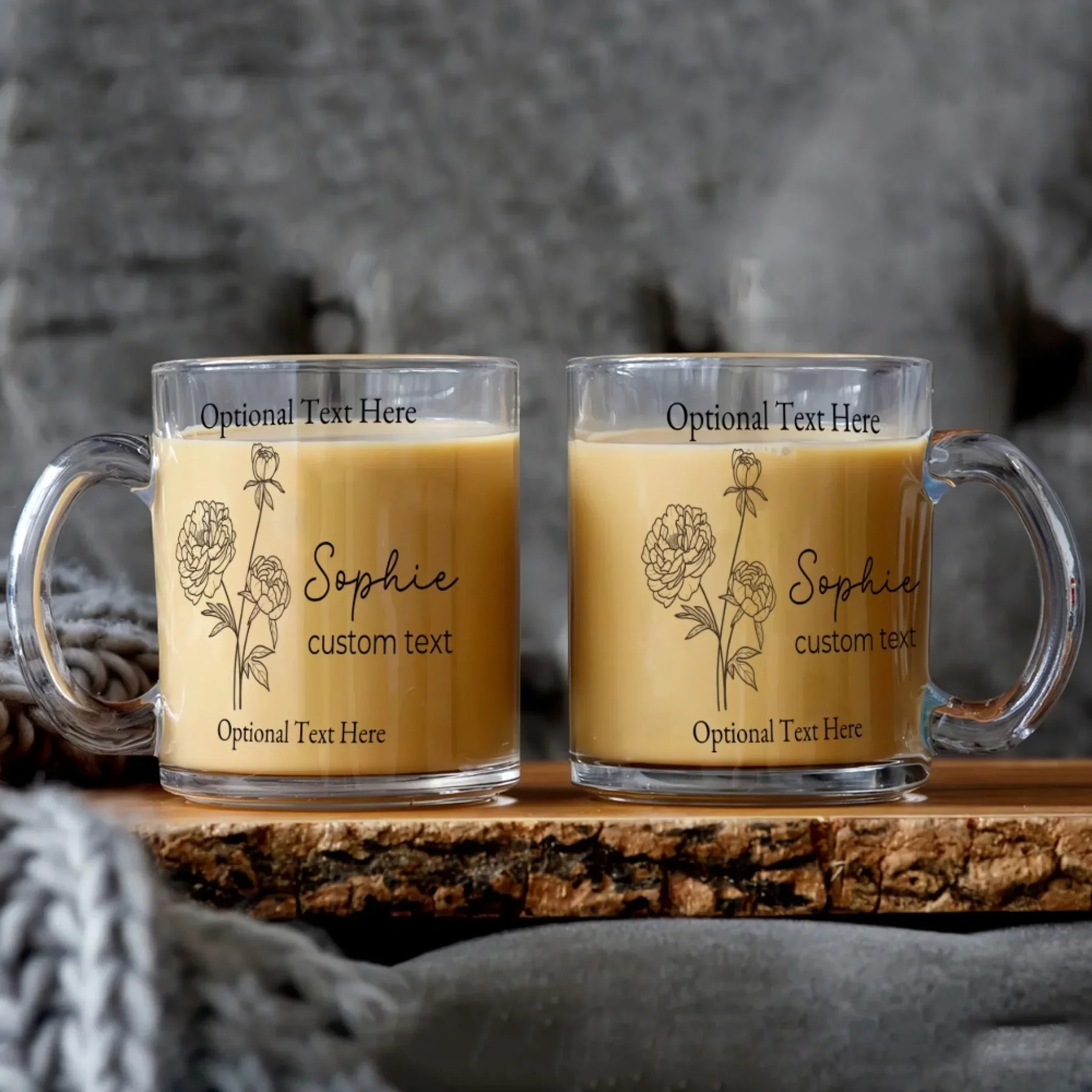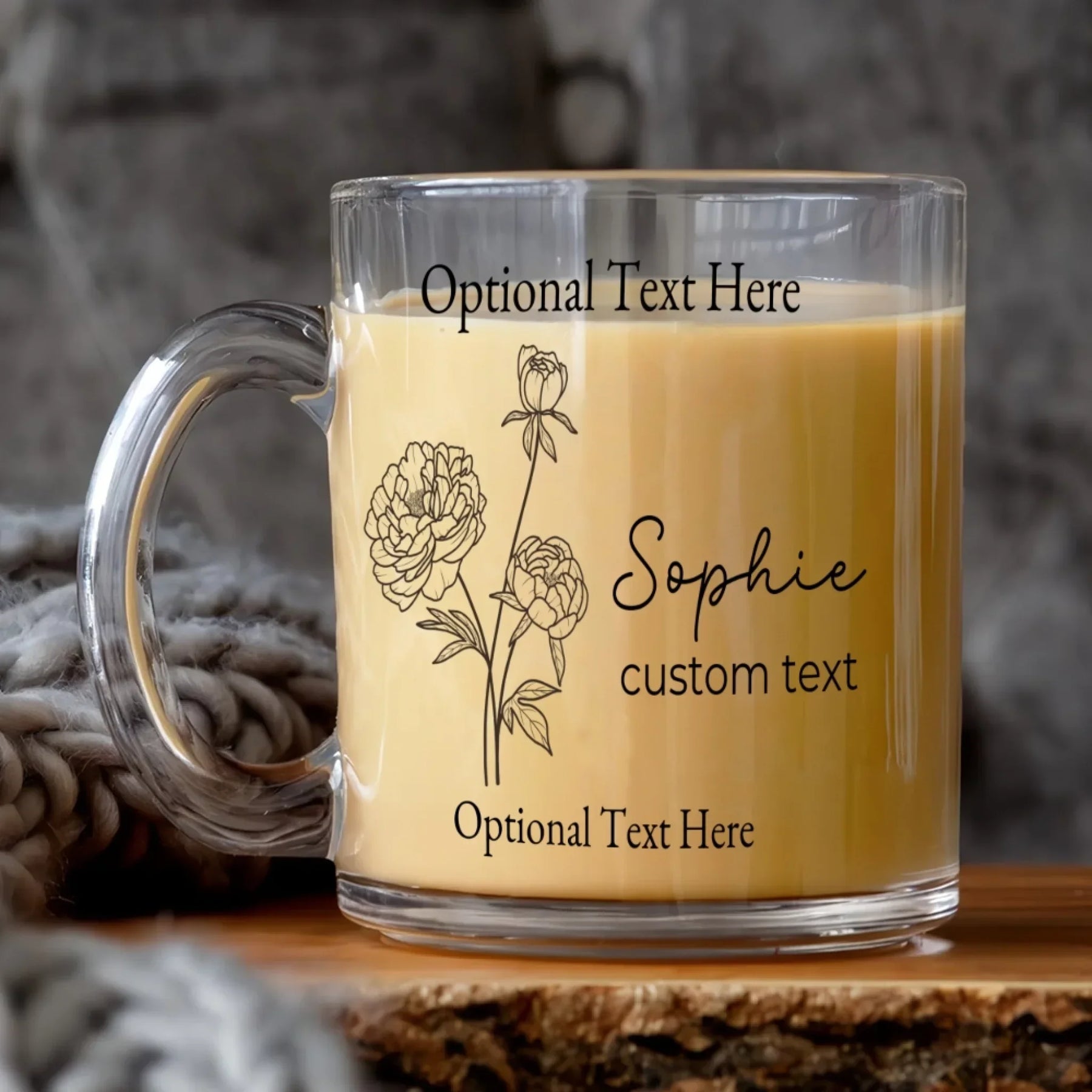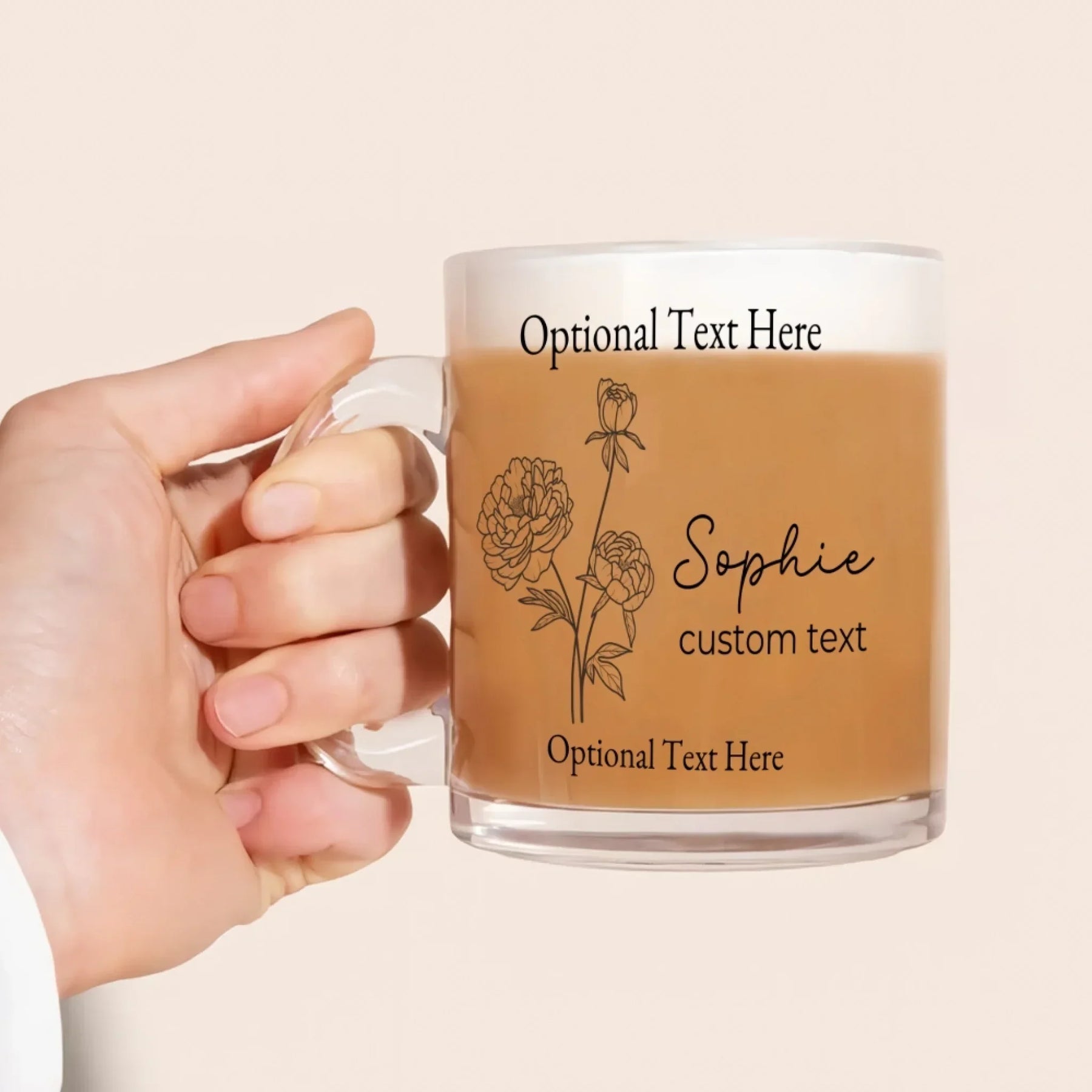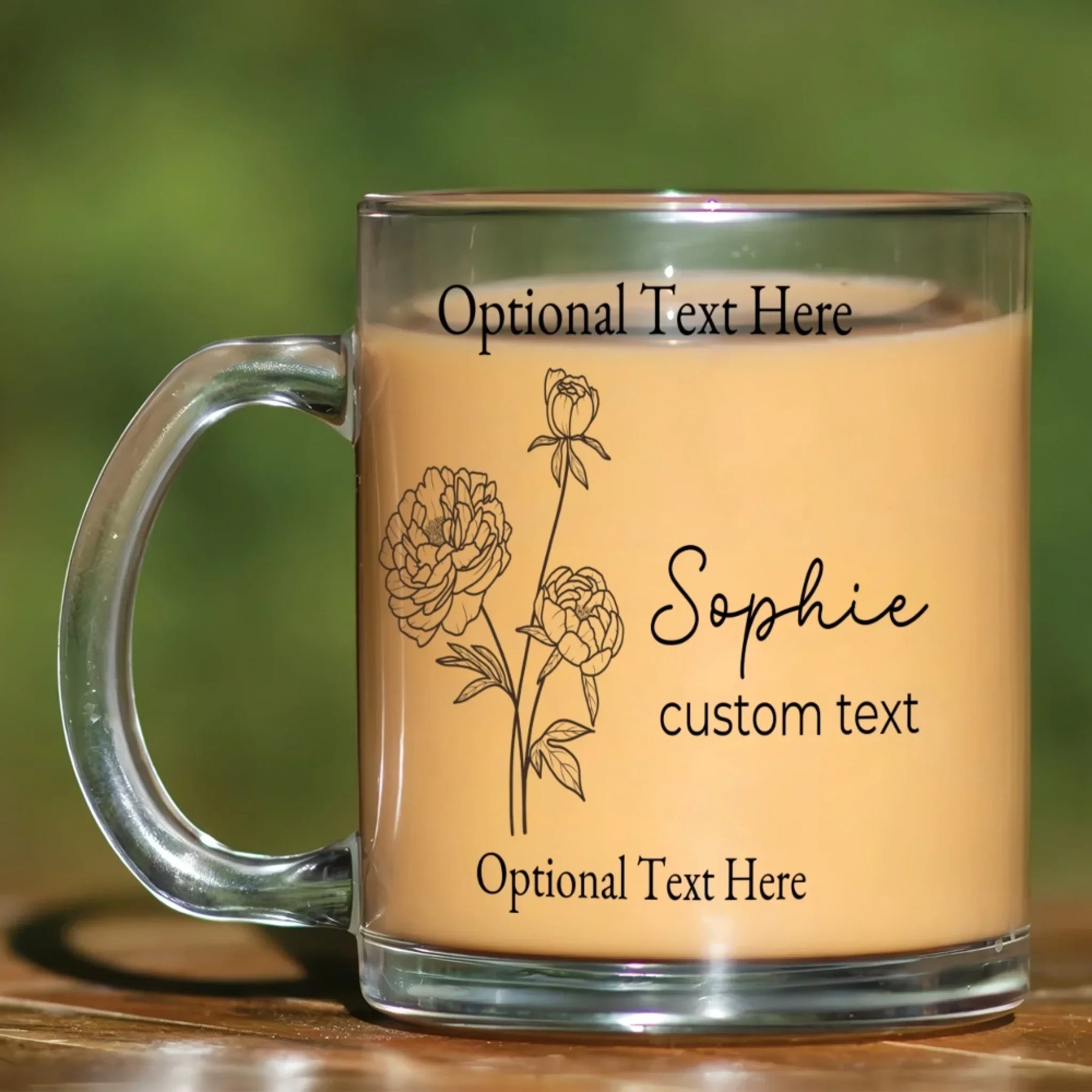 Add simple beauty and meaningful symbolism to your daily routine with this line art mug, designed for minimalist floral lovers and those who appreciate clean, elegant style. Made from premium, high-clarity glass, this 11oz clear mug features delicate line art birth month flowers, paired with a custom name and optional second-line text, title, or footer. With customizable fonts and colors, each mug becomes a personalized, artistic keepsake.