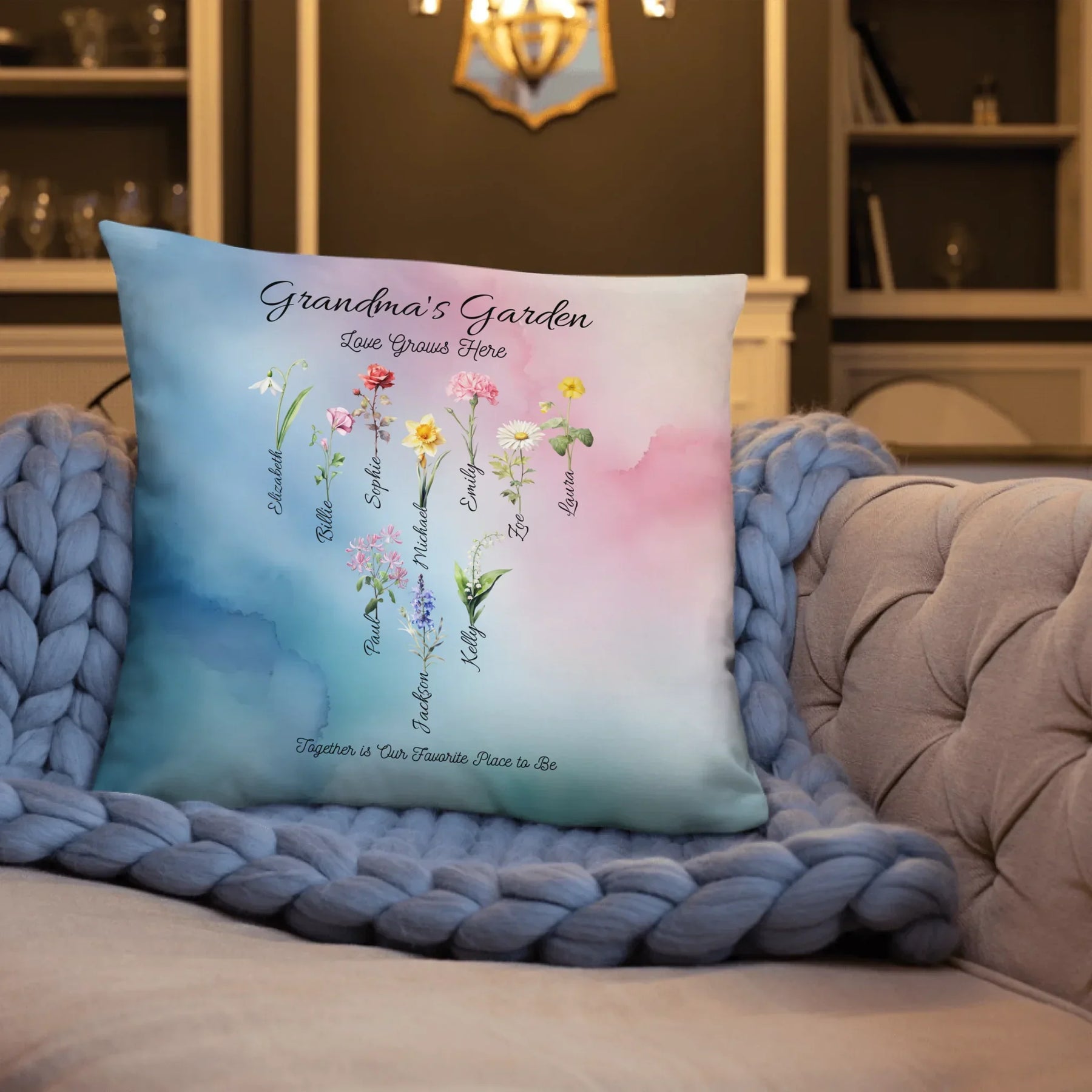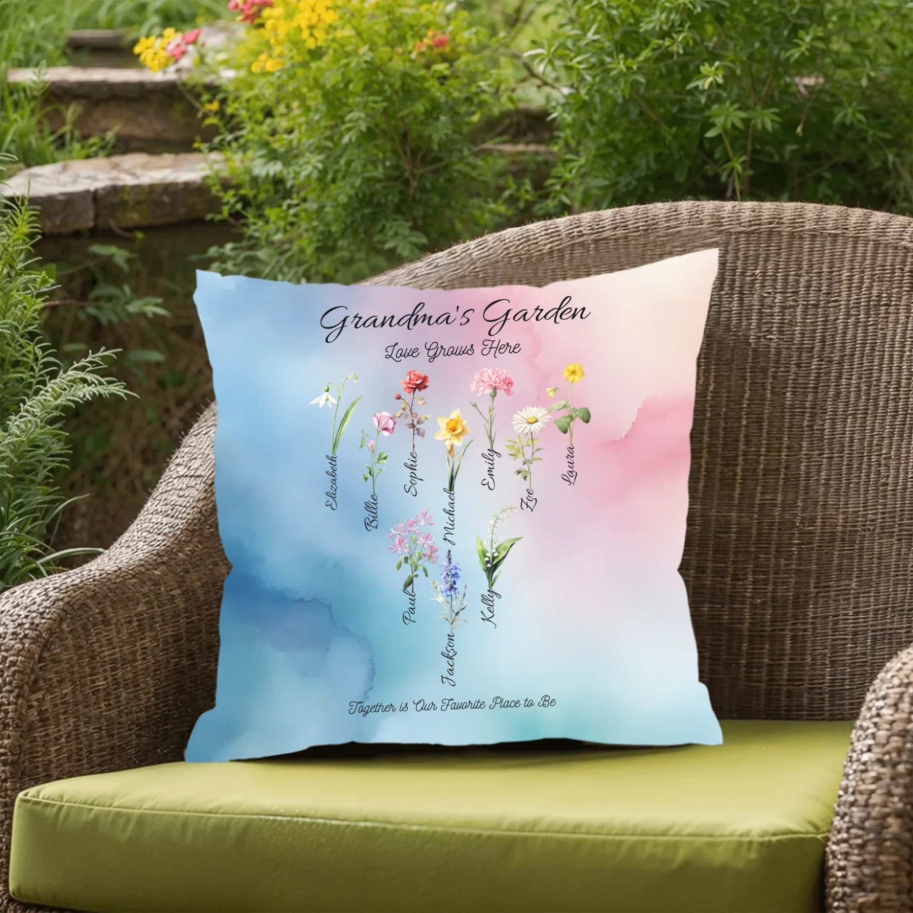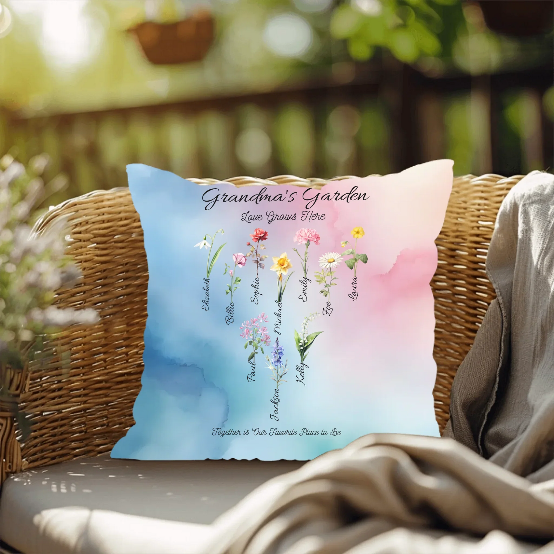 This Birth Month Flowers Pillow makes a perfect gift for mothers, grandmothers, or families, symbolizing the love that grows together.