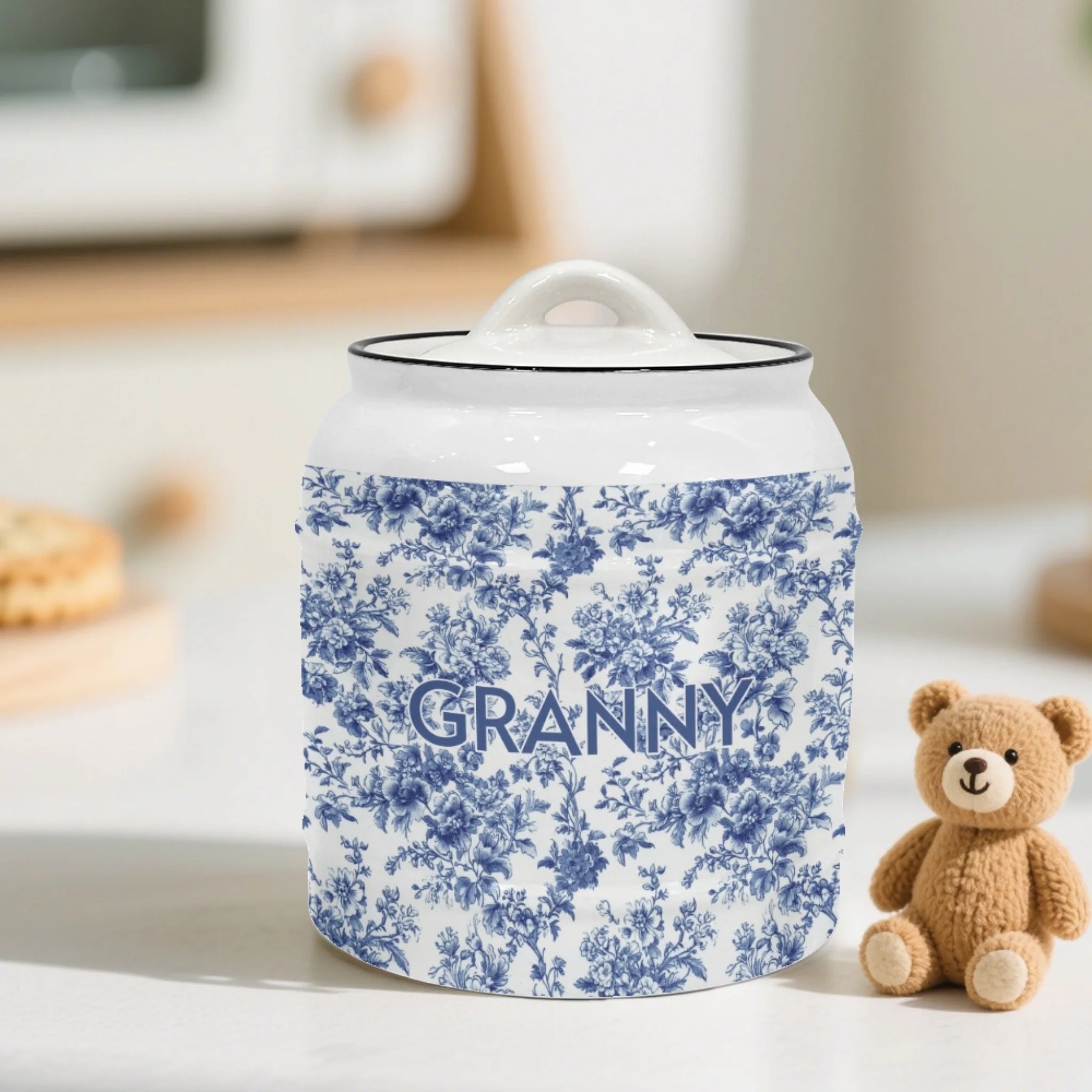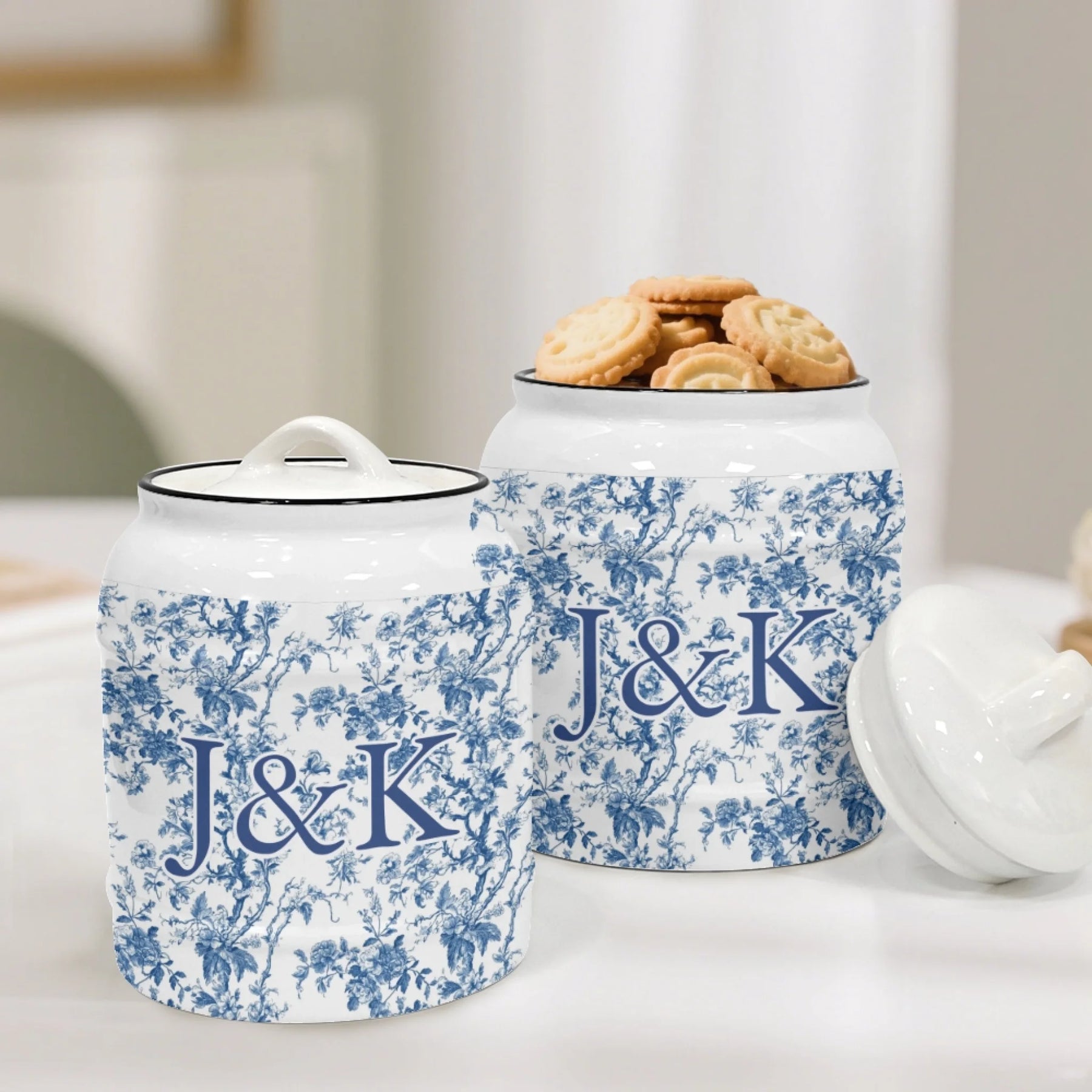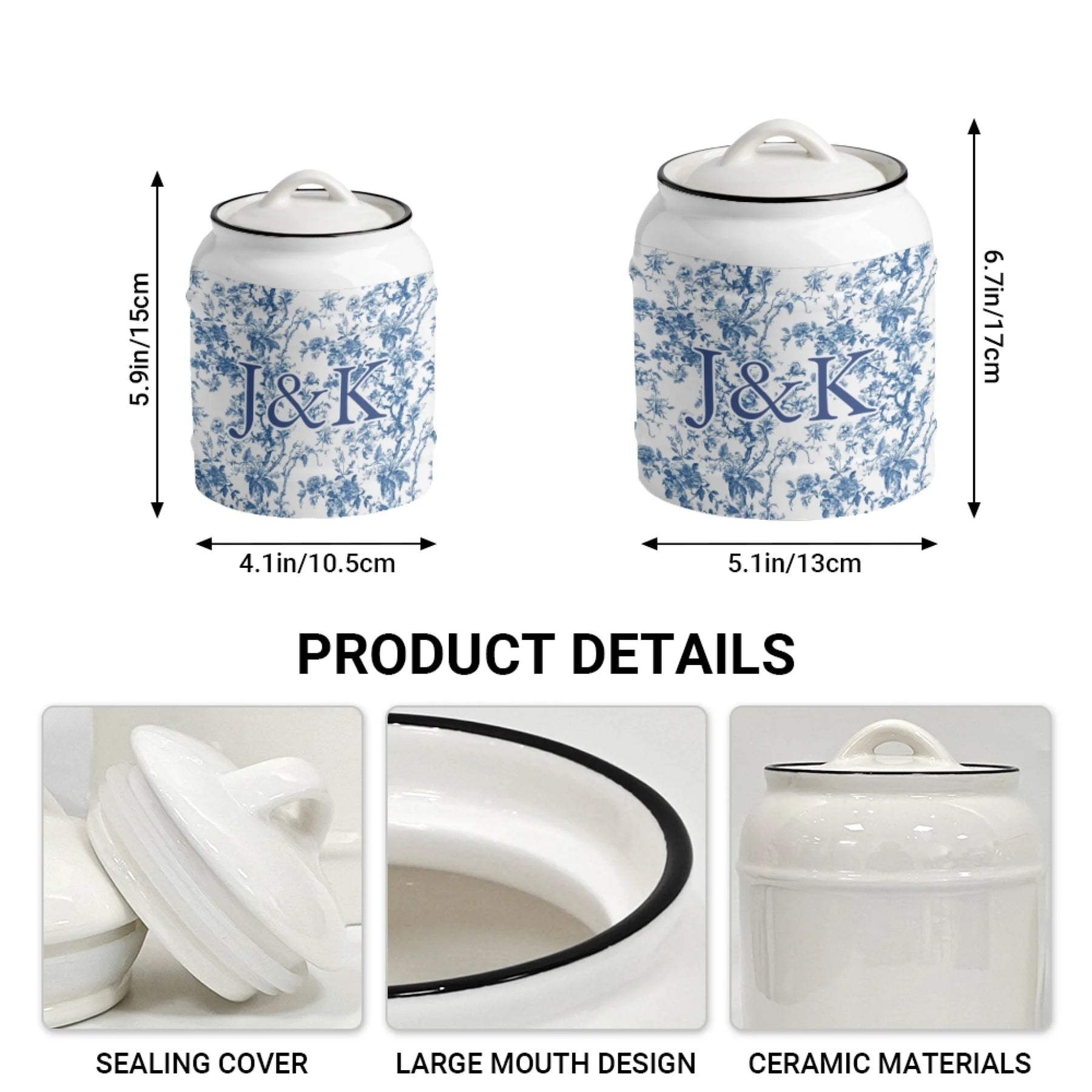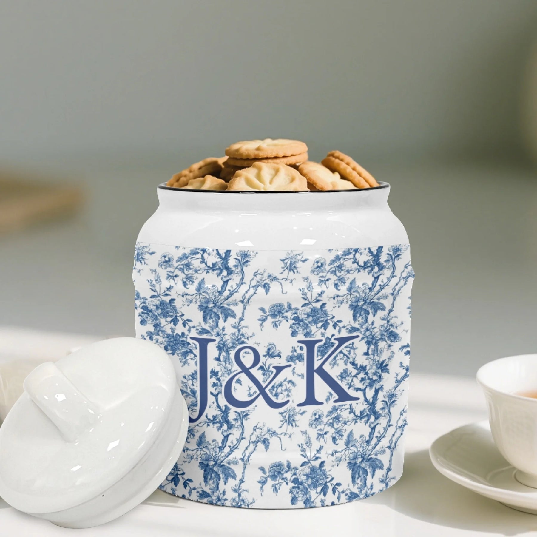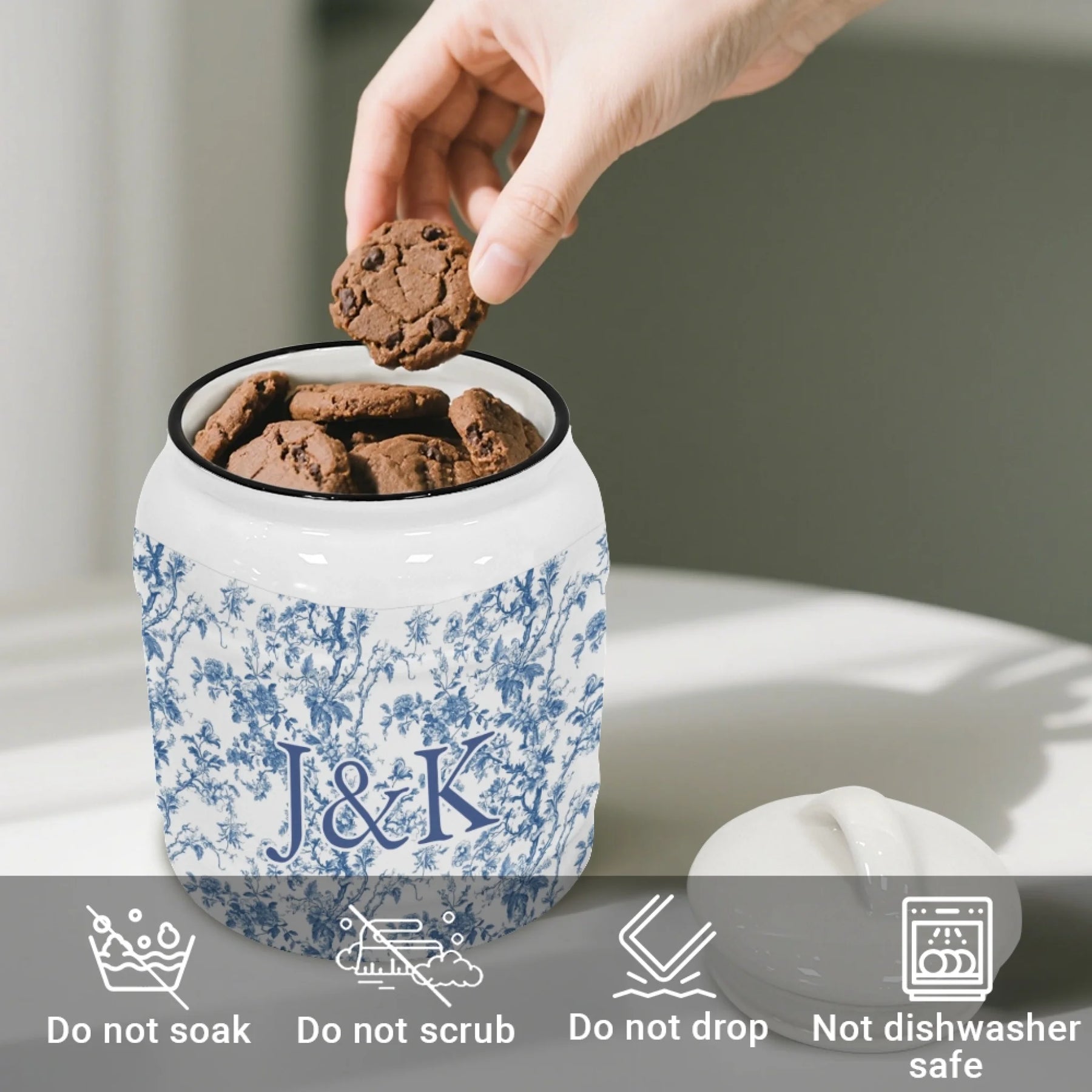 Custom Blue Toile Ceramic Cookie Jar – Personalized Airtight Storage