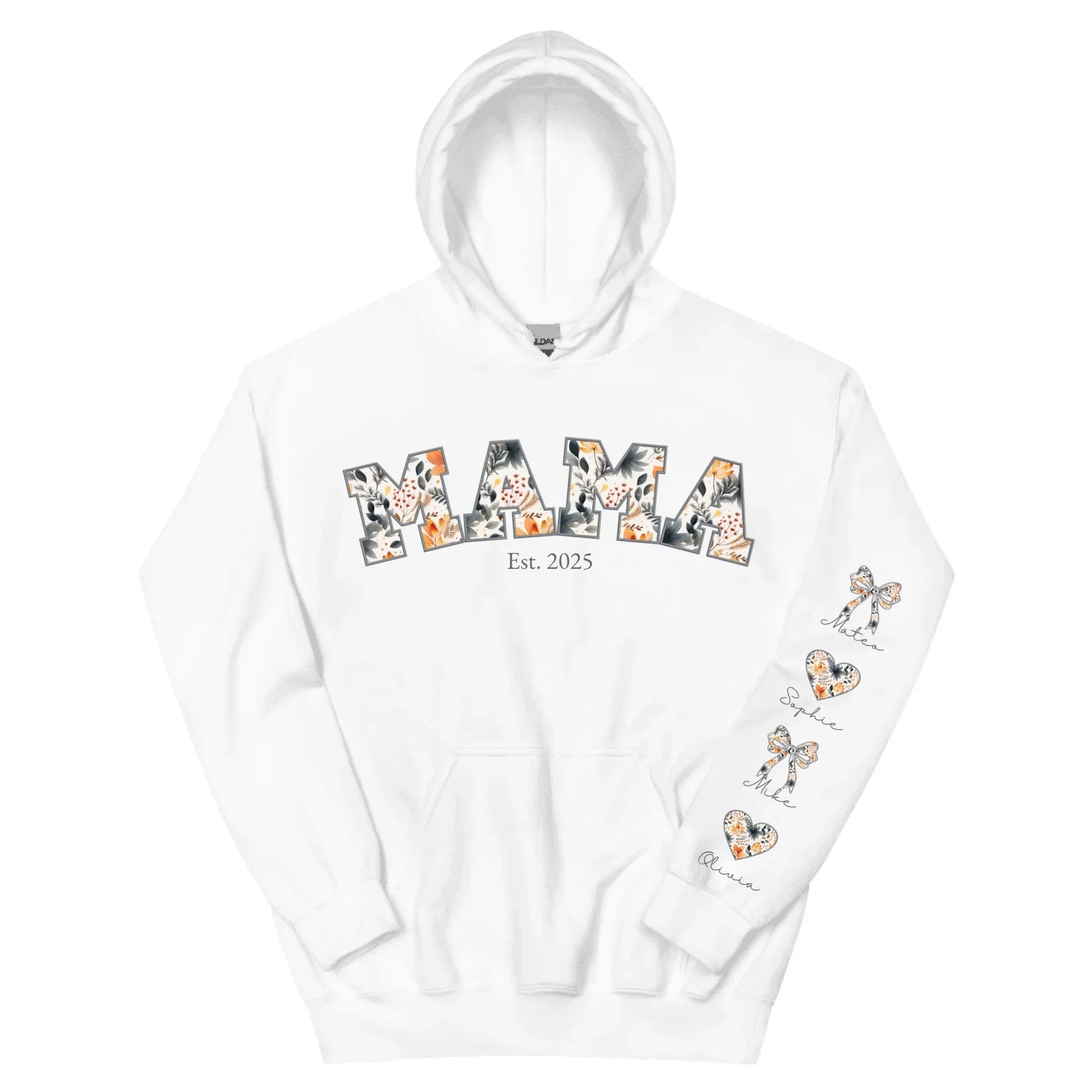 Made from soft, premium Gildan fleece, this MAMA sweatshirt and hoodie blend comfort, durability, and a timeless look perfect for chilly weather. Personalize the sleeves with up to seven icons (heart or bow) and matching names to make your piece uniquely yours.