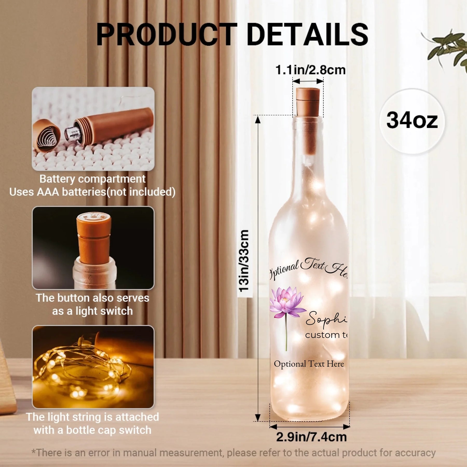 Custom Bottle Lamp – 34oz LED Birth Month Flower Design
