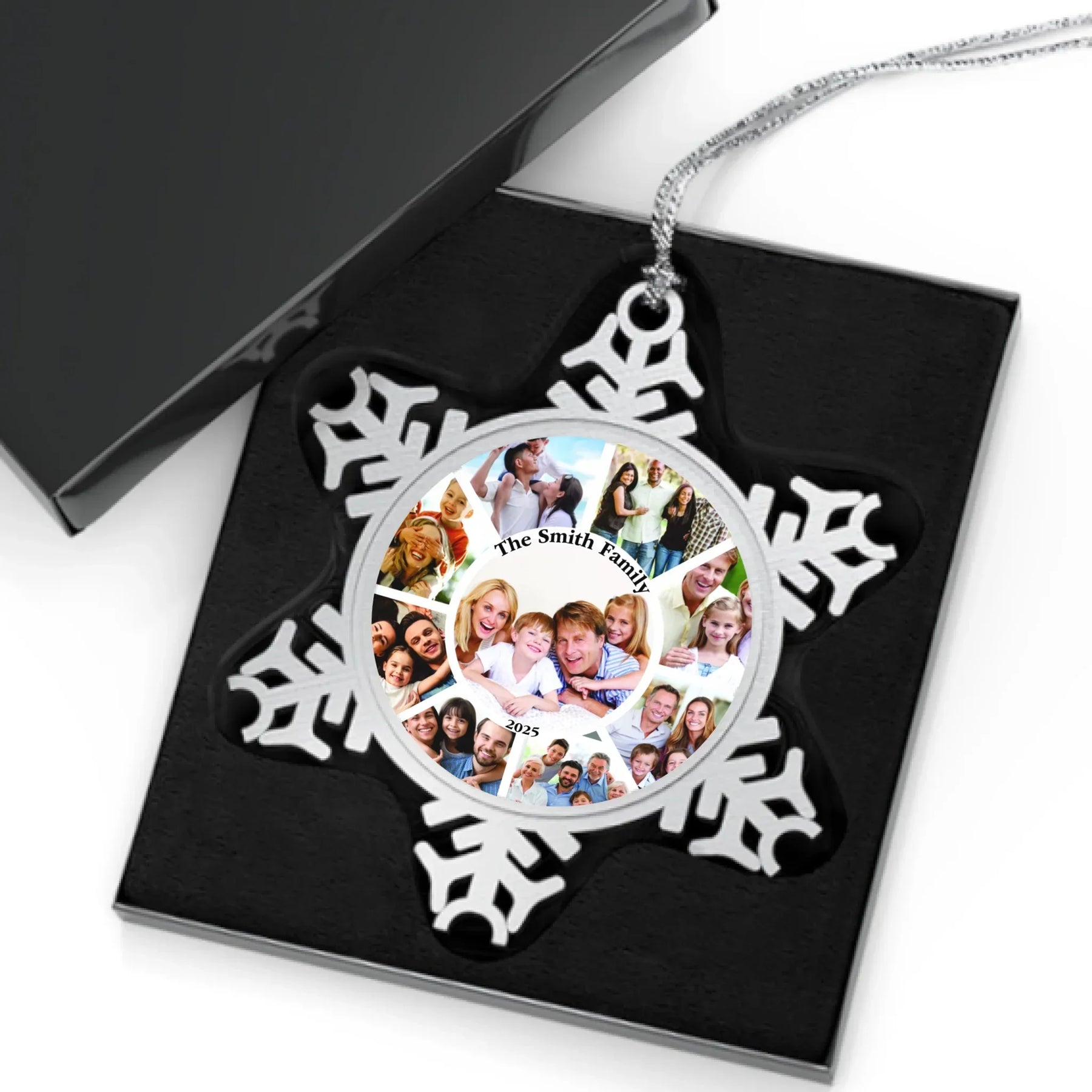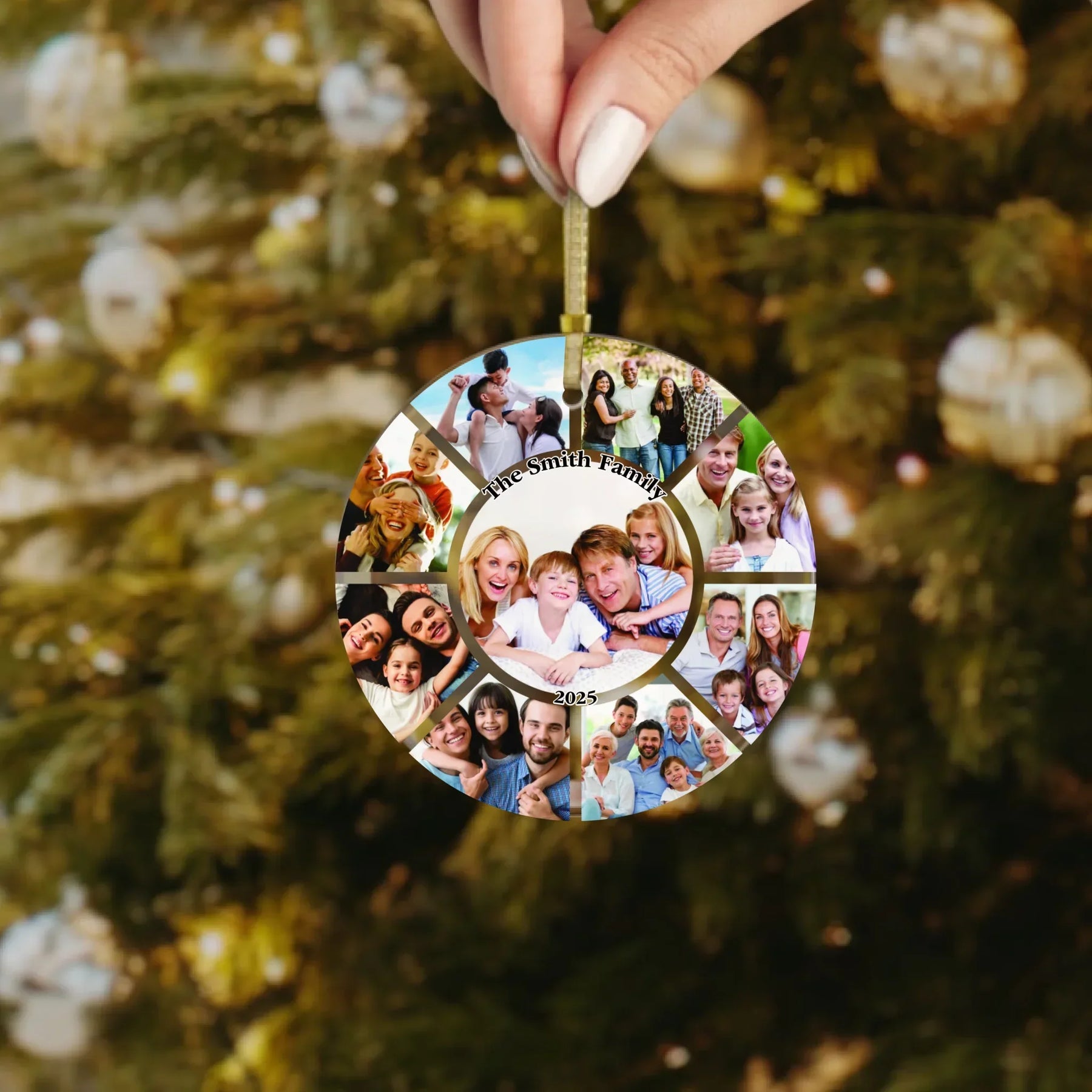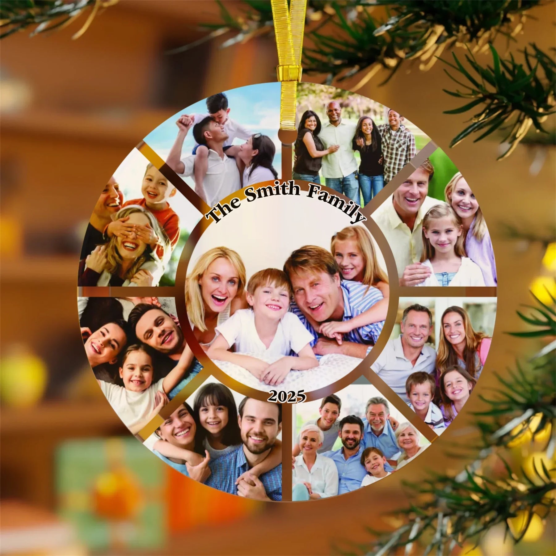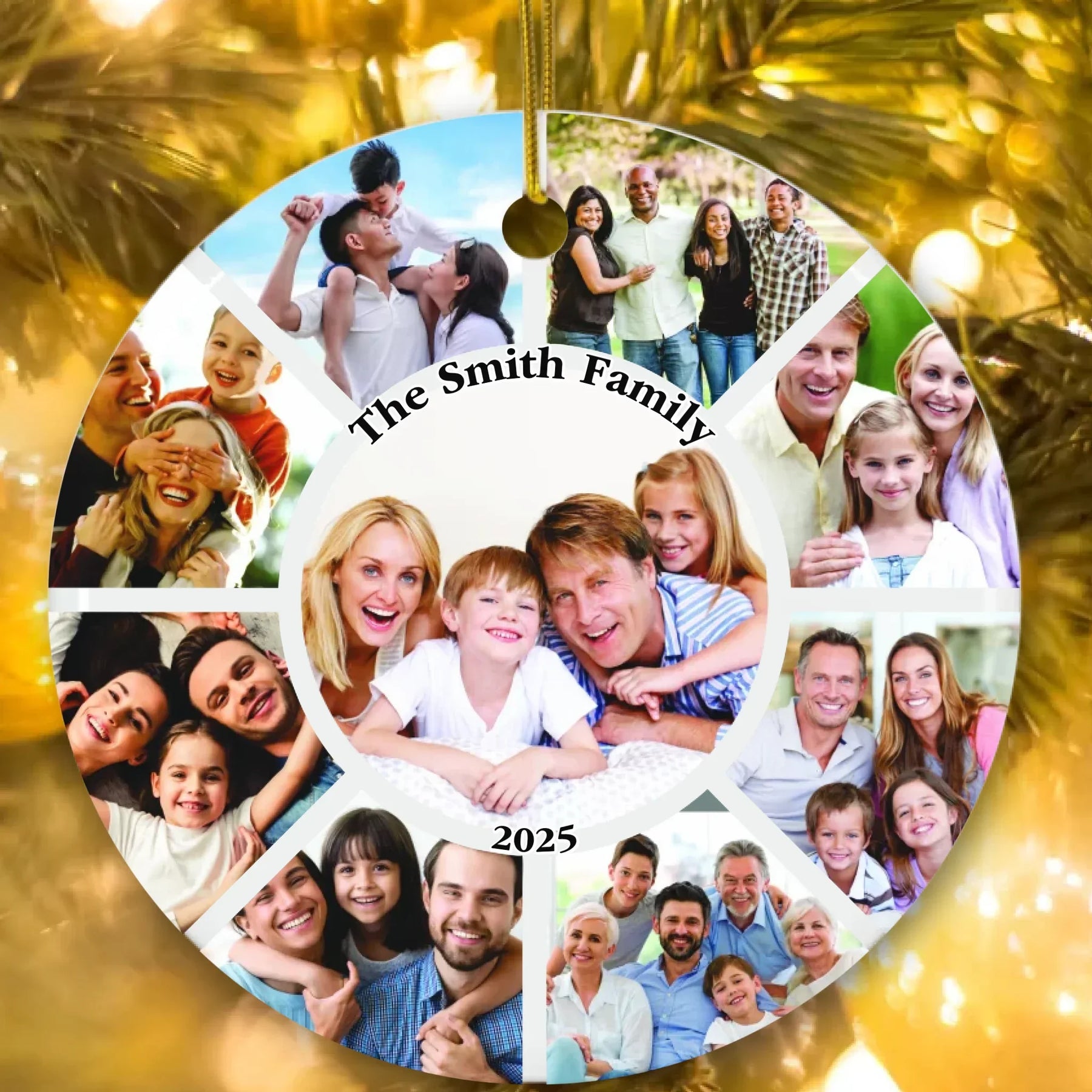 Whether it’s joyful holidays, milestones, or candid everyday smiles, this ornament transforms those precious memories into art. Add your family name, custom message, and year to create a heartfelt keepsake that will shine on your Christmas tree for years to come.