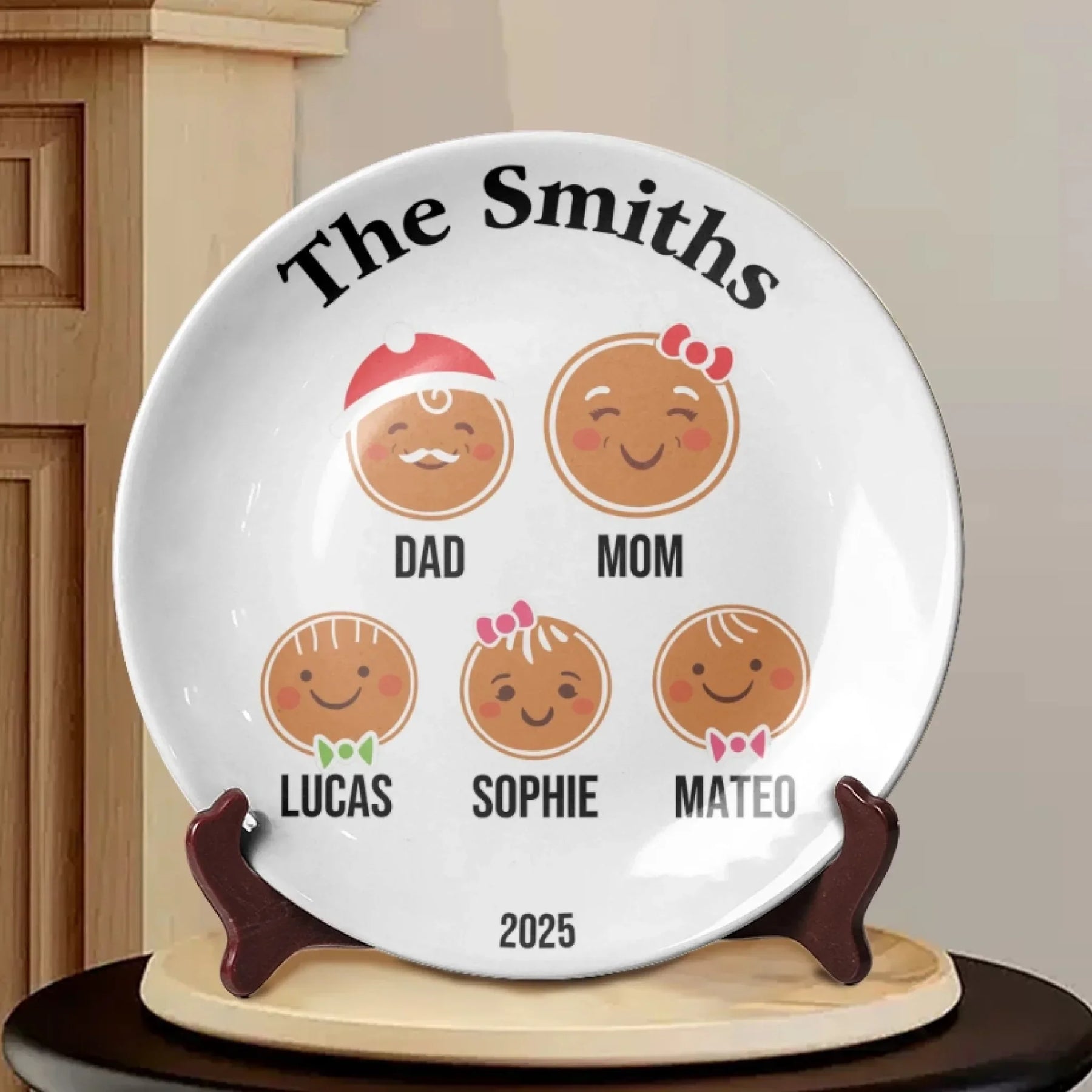 Custom Gingerbread Family Ceramic Plate (with Stand)